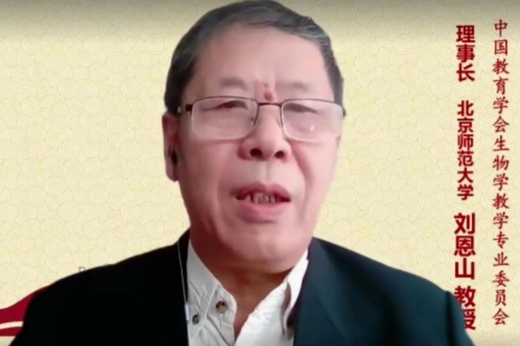 中国教育学会生物学教学专业委员会理事长、北京师范大学刘恩山教授代表中国教育学会生物学教学专业委员会致辞,他介绍了本次研讨会的筹备情况,希望与会代表围绕生物学课程的建设、课堂教学、学业评价和生物学教师专业发展等方面展开交流,并对本次会议的筹备和组织工作表示衷心感谢。