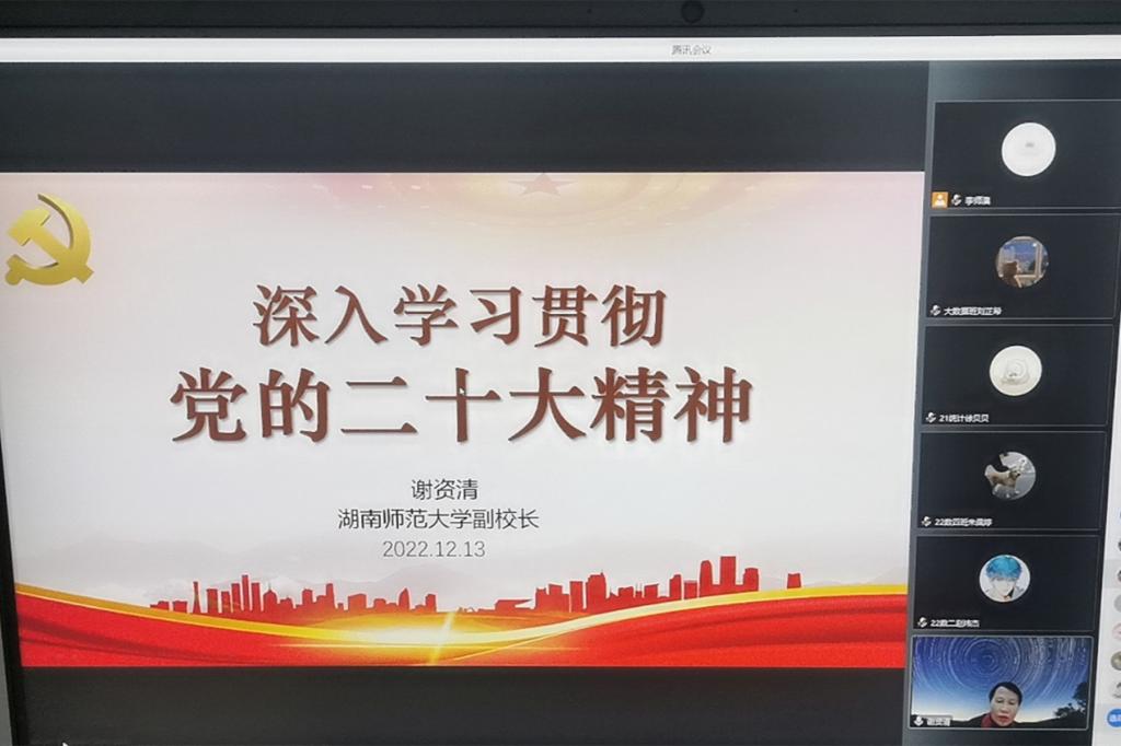 (通讯员 郭校语 石卓)12月13日晚,数学与统计学院开展了以“深入学习贯彻党的二十大精神”为主题的形势与政策专题教育课程。会议由2022级新生辅导员李师澳主持,我校副校长谢资清担任主讲人。