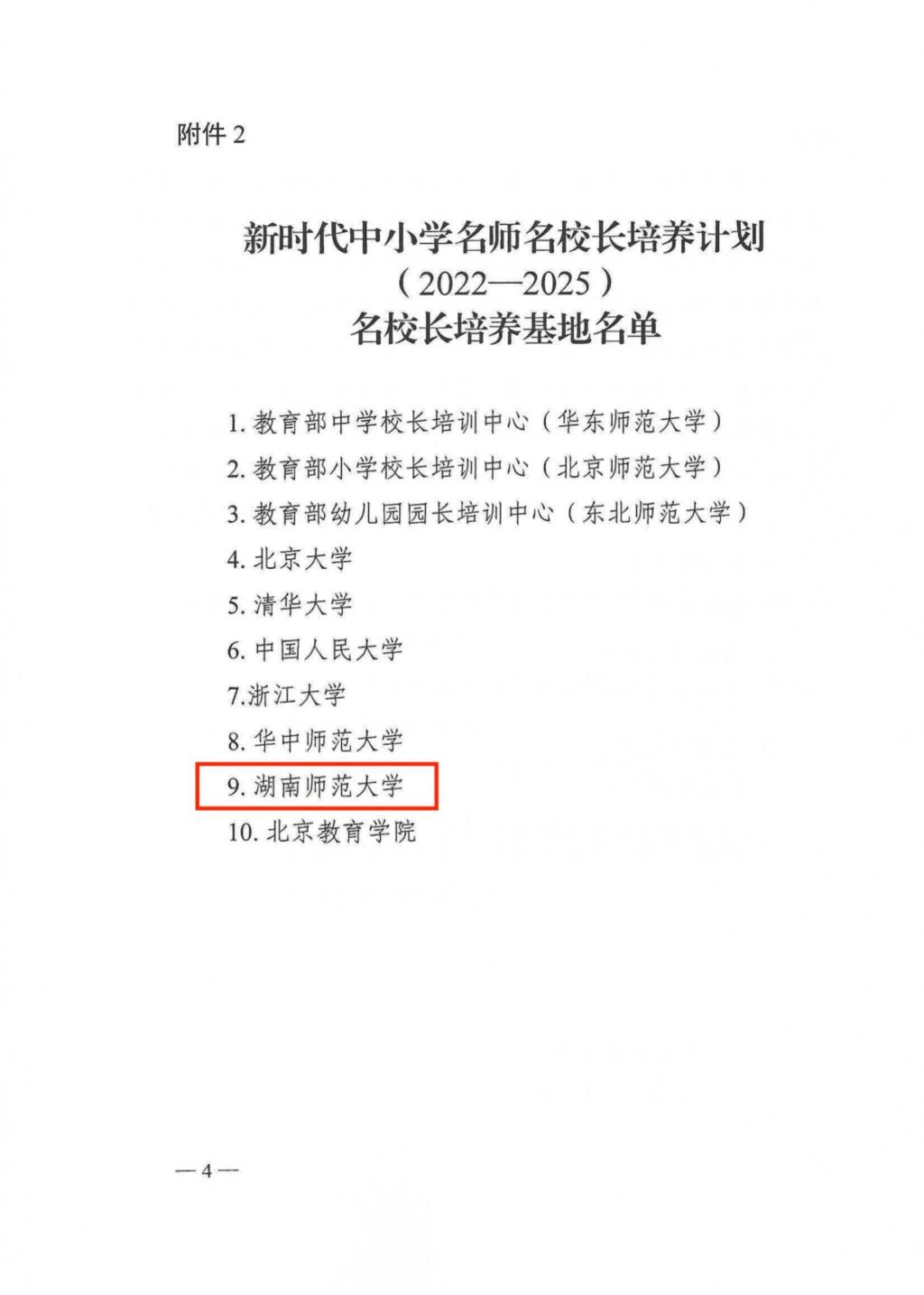 (通讯员 陈甲元)近日,教育部下发《教育部办公厅安博线上平台公布新时代中小学名师名校长培养计划(2022—2025)培养基地及培养对象名单的通知》(教师厅函〔2022〕32号),我校成功入选教育部新时代中小学名师名校长培养计划(2022—2025)名校长培养基地,成为全国十个名校长培养基地之一,这是继我校入选“教育部—中国移动中西部中小学校长培训项目”20所承办高校之列后的又一重大成果,该项目也是目前教育部中小学校长培训中层次最高的项目。