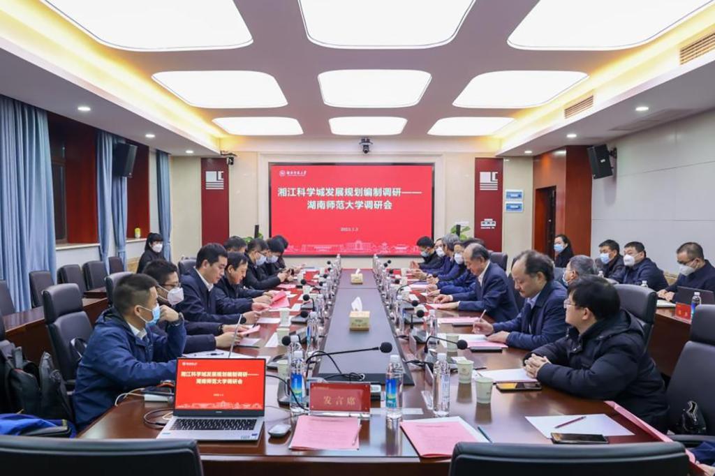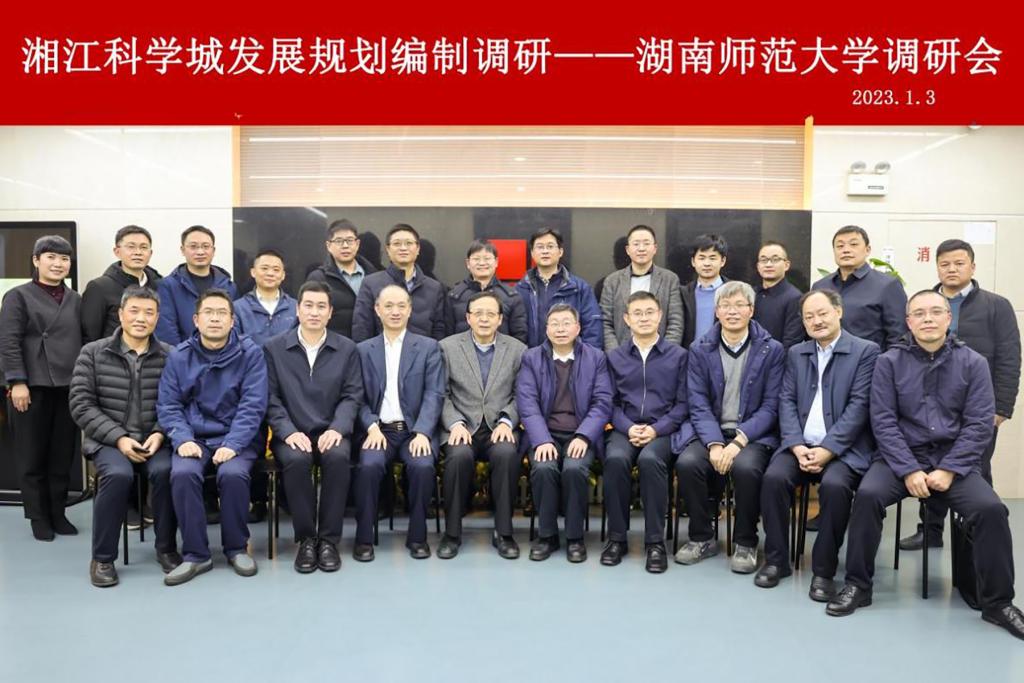 杨震对湘江科学城发展规划编制专家组一行来校考察指导表示感谢。自省委省政府启动湘江科学城规划论证以来,我校主动担当作为,精准对接国家和湖南省的发展需求,积极谋划、深入论证分析,形成了“11+N”的产业发展矩阵,相信在各位专家的指导和帮助下,学校将更好地形成和完善融入湘江科学城发展和建设的规划,提出具有师大特色、突显师大水准、展示师大作为的高质量方案,为推进湘江科学城建设、服务湖南省“三高四新”战略定位和使命任务做出师大贡献。