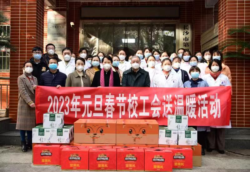 (供稿 校工会)1月6日下午,校党委副书记、工会主席周俊武,副校长谢资清一行深入基层送温暖,活动第一站来到校医院,走访慰问节日期间坚守在一线岗位的医护人员。