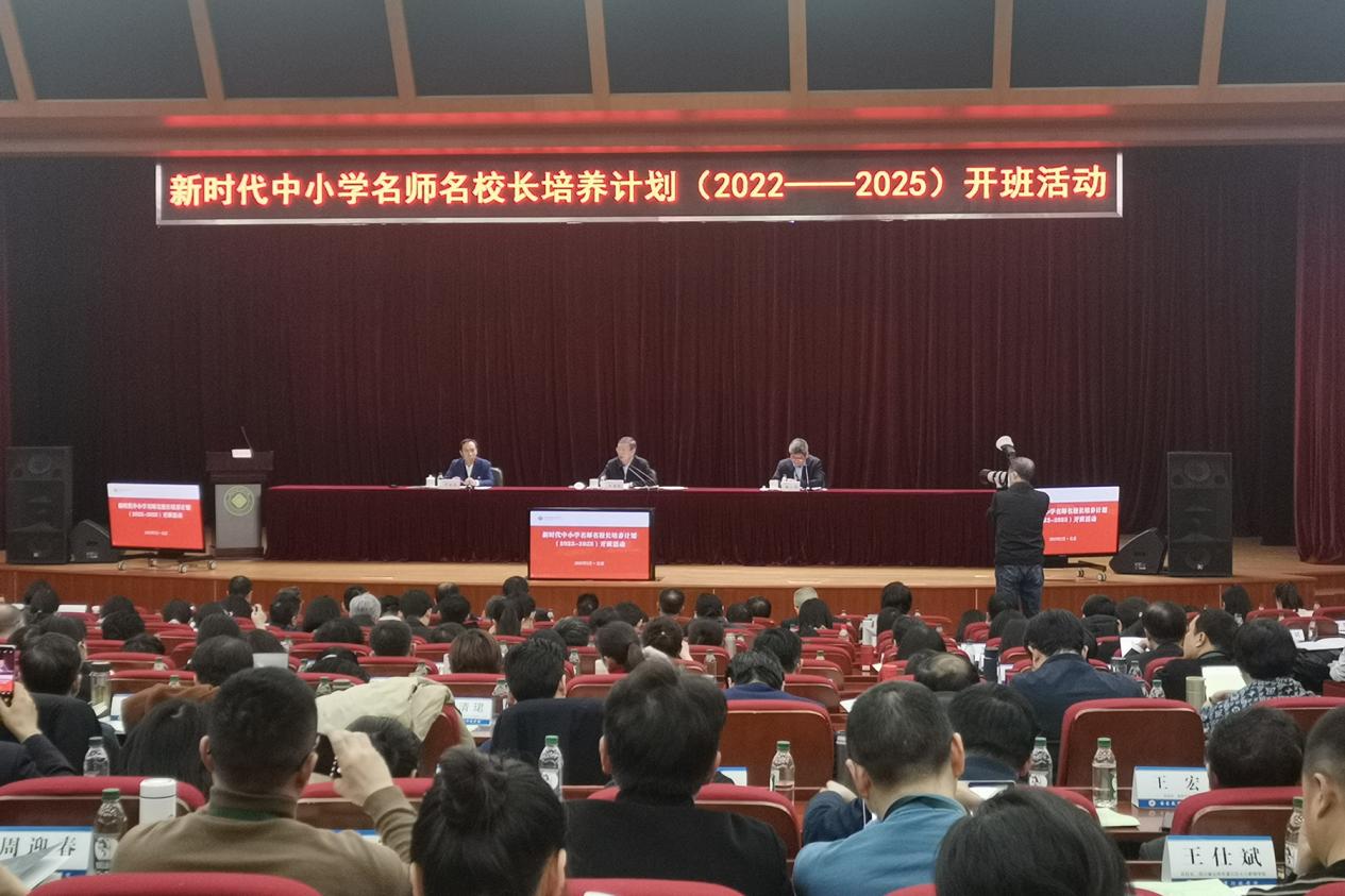 (供稿 干训办)2月20日,新时代中小学名师名校长培养计划(2022—2025,简称“双名计划”)开班活动在北京举行。教育部党组成员、副部长王嘉毅出席并讲话,教育部教师工作司司长任友群、副司长黄小华、国家教育行政学院副院长于京天出席,我校副校长唐贤清出席会议并介绍我校基地的培养模式与特色。