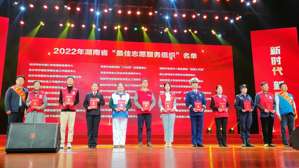 (供稿 校团委)弘扬雷锋精神,争当时代先锋。为大力弘扬雷锋精神,展示“四季同行·雷锋家乡学雷锋”活动成效,2022年度湖南学雷锋和志愿服务先进典型发布仪式,于3月2日上午在雷锋故里长沙市望城区雷锋大剧院举行。湖南省委常委、省委宣传部部长、省文明委副主任杨浩东等出席仪式,全省共有260名个人和集体入选。我校工程与设计学院沈竹老师荣获“湖南省岗位学雷锋标兵”,旅游学院文旅志愿服务队获评“最佳志愿服务组织”,服务队指导老师龚曦作为代表领奖。