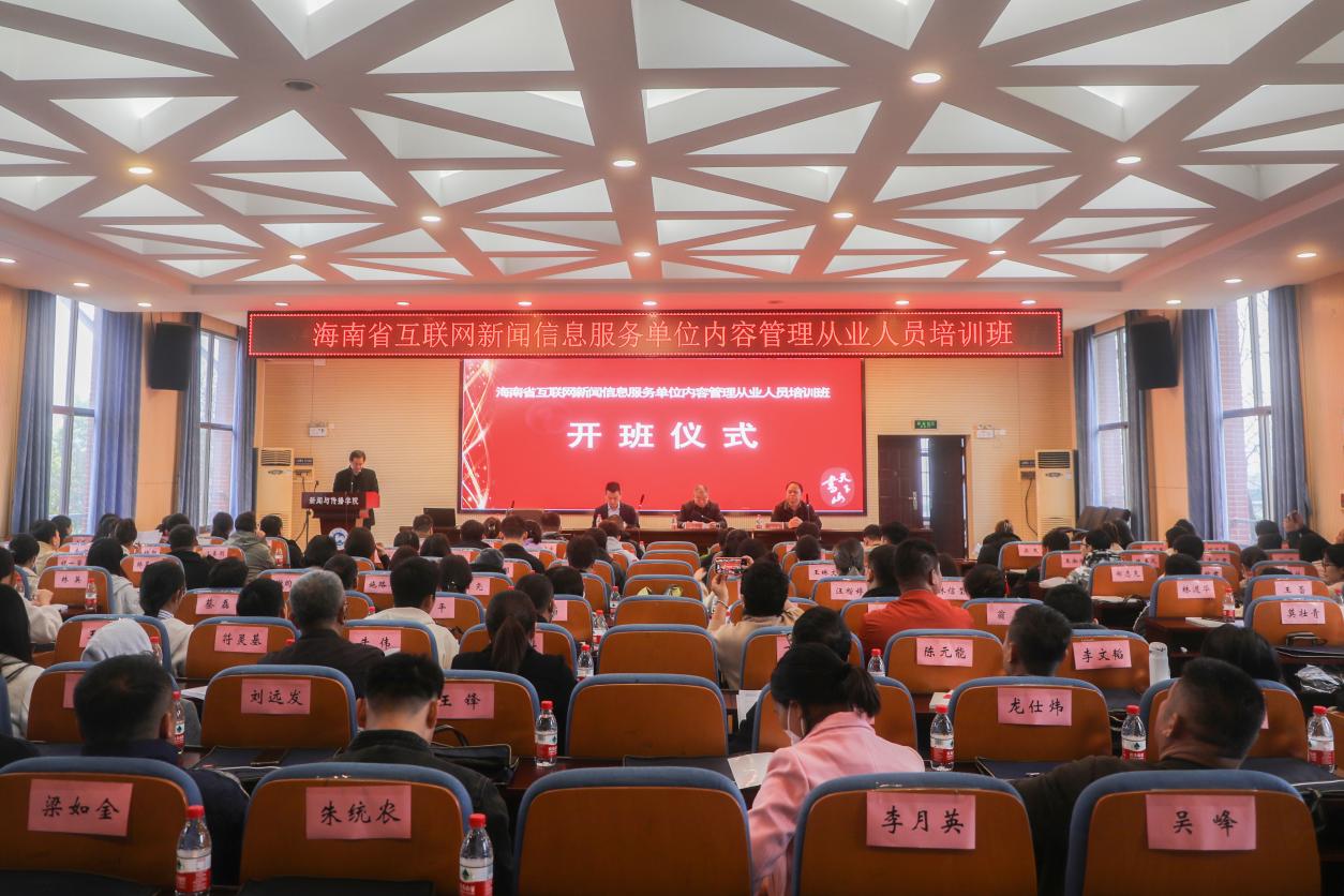 海南省网信办三级调研员周宏伟、新闻与传播学院相关单位负责人及培训班全体学员参加开班仪式。