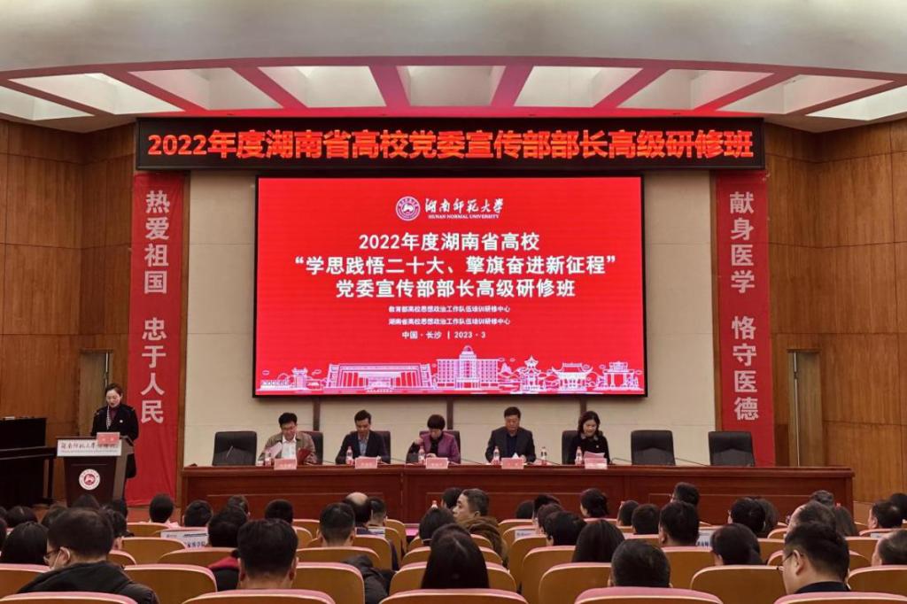 (通讯员 周鸿渝 高远瞩 贺文卓)3月27日上午,2022年度湖南省高校党委宣传部部长高级研修班在我校医学院仁医楼报告厅举行。省委教育工委、省教育厅一级巡视员罗桂香,省委教育工委宣传部副部长曾思亮,我校副校长王辉出席开班仪式。