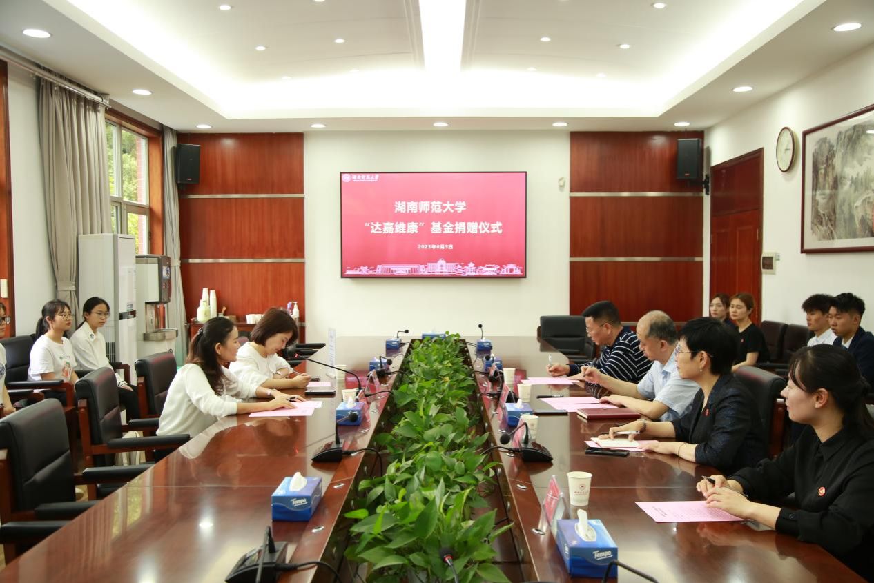 (通讯员 唐健清 谭恒)6月5日下午,我校与湖南达嘉维康医药集团举行基金捐赠项目签约仪式。湖南达嘉维康医药集团总裁胡胜利,我校副校长杨震出席签约仪式。签约仪式由化学化工学院党委书记谭东波主持。
