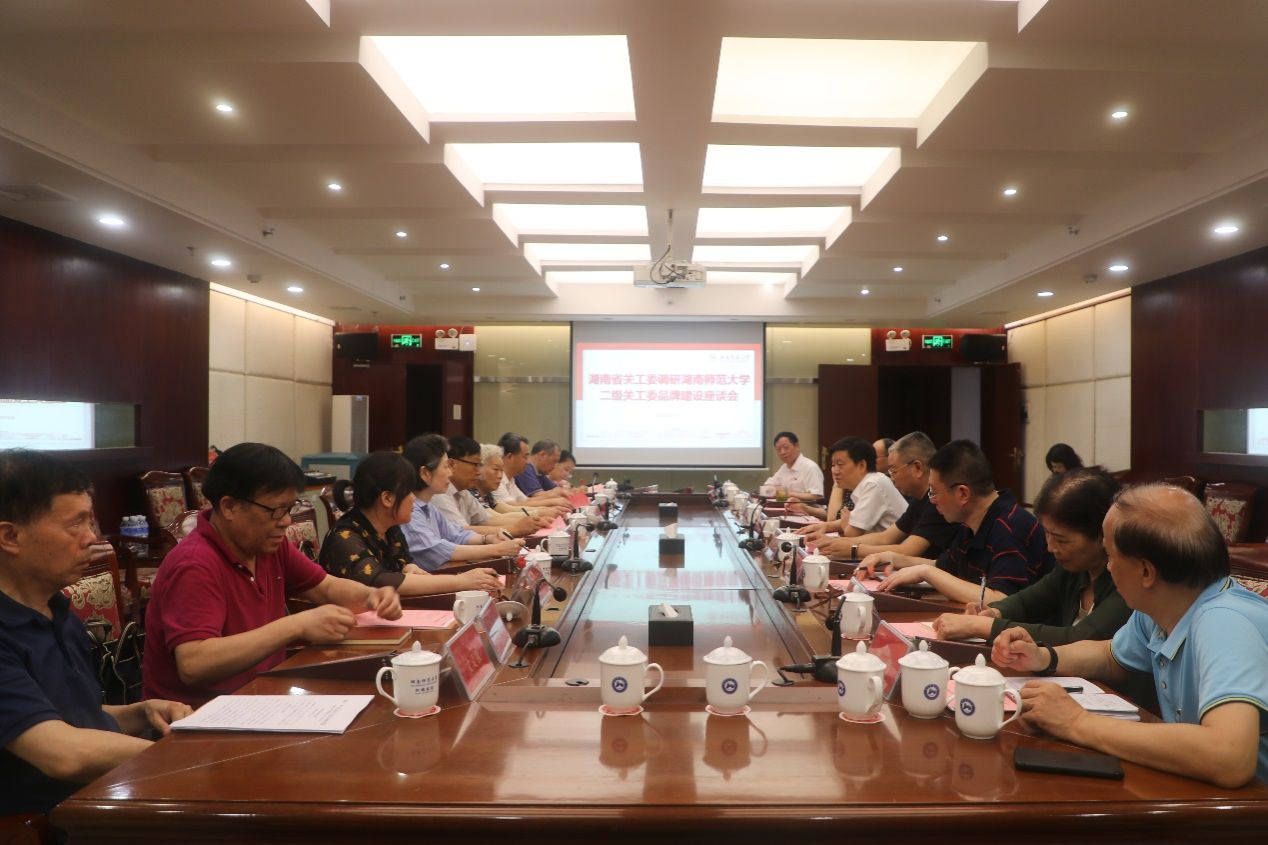 (记者 马铁泉 马境韩)6月21日上午,湖南省关工委来我校调研二级关工委工作情况,并召开调研品牌建设会。会议在红楼四楼举行。省关工委副主任武吉海、石玉珍、袁新华,我校党委书记、关工委名誉主任蒋洪新,党委副书记、关工委主任周俊武出席会议。省委教育工委副书记王建华、省教育厅关工委常务副主任舒凡卿主持会议。