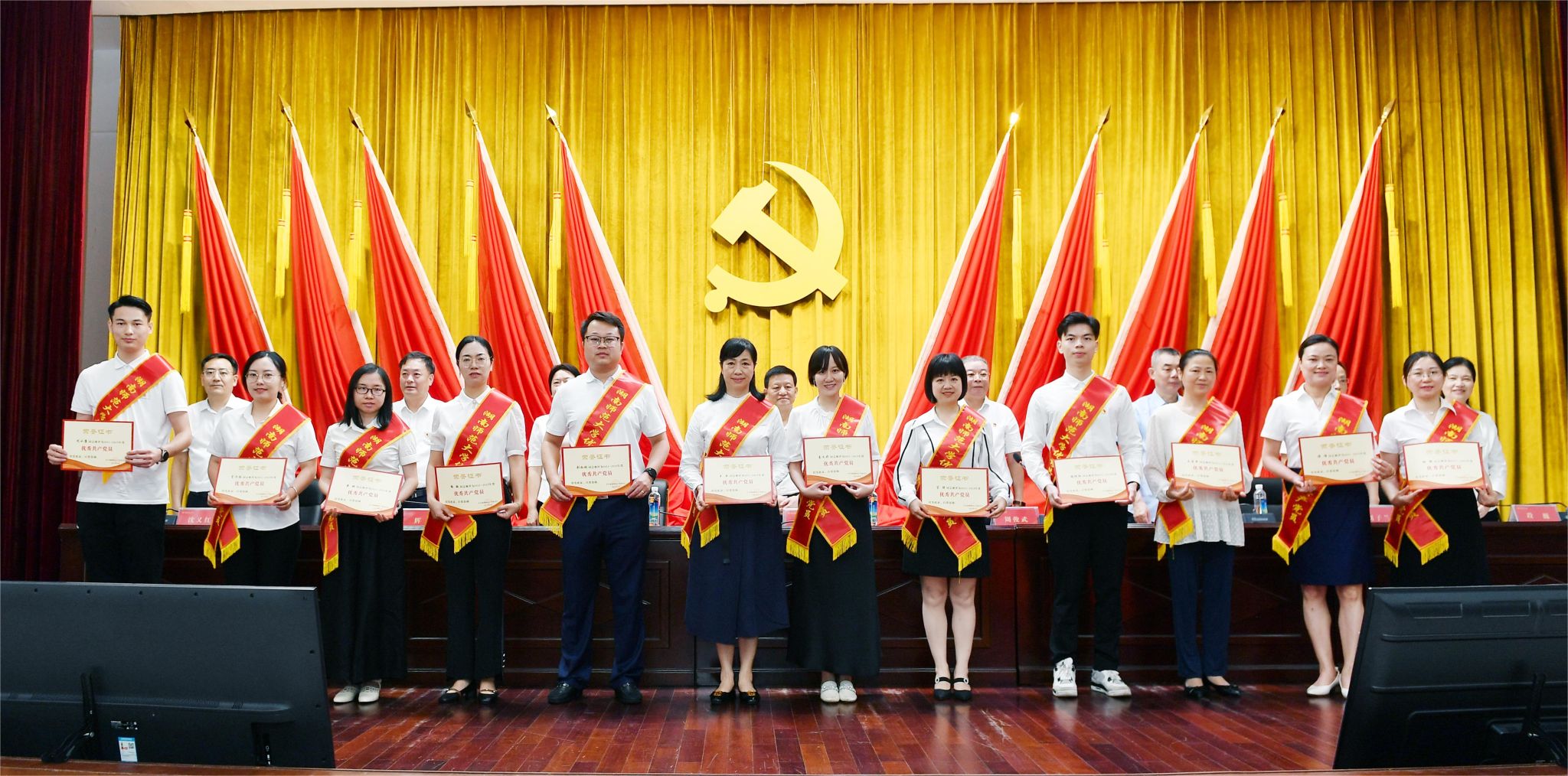 副校长王辉宣读学校优秀共产党员、优秀党务工作者和先进基层党组织表彰决定。200名党员获评“优秀共产党员”,40名党务干部获评“优秀党务工作者”,10个二级党组织和50个基层党支部获评“先进基层党组织”。
