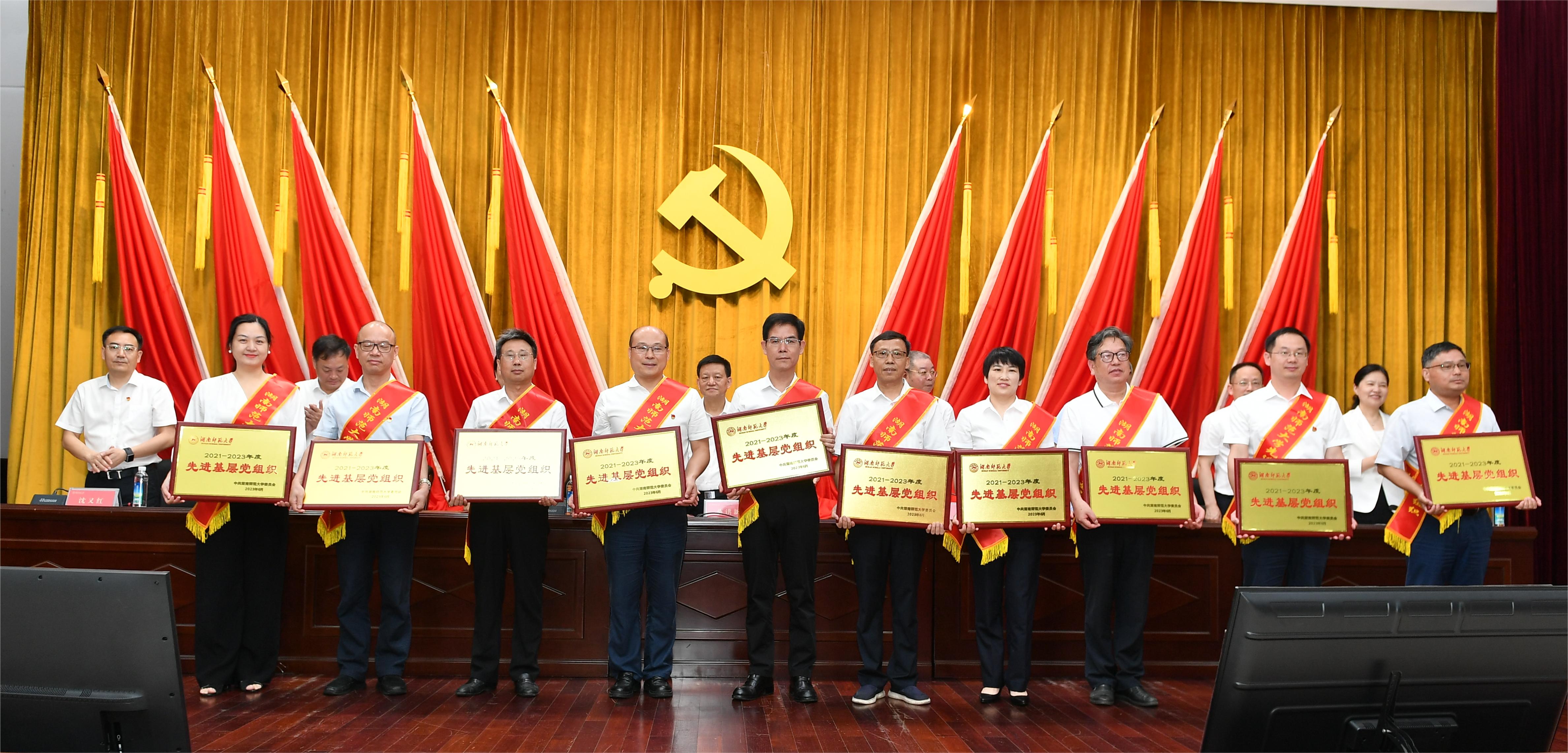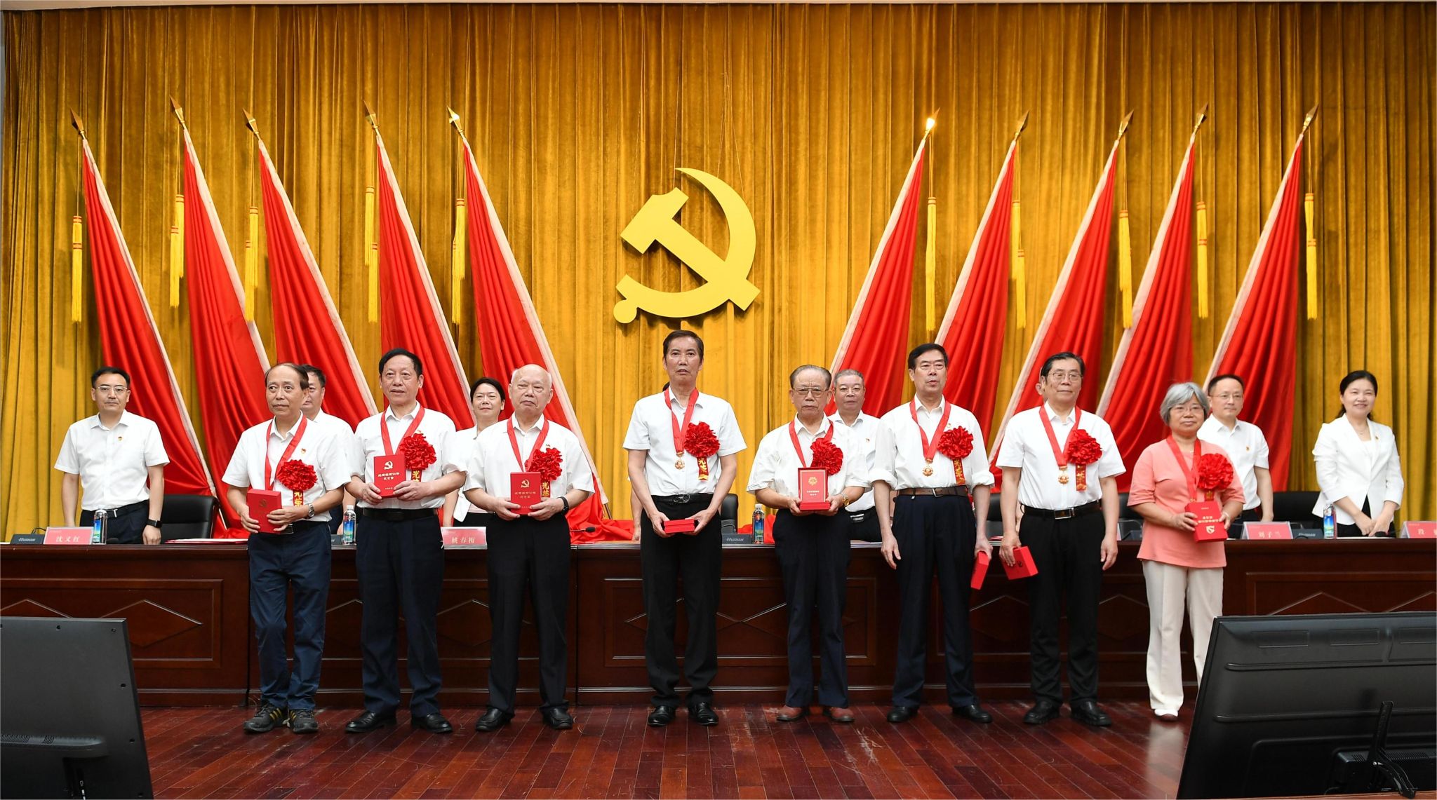 蒋洪新代表学校党委向获得“光荣在党50年”纪念章的党员、向受到表彰的优秀个人和先进集体表示祝贺,向全校共产党员致以节日的问候。蒋洪新回顾了我们党100多年的奋斗历程;回顾了学校坚持党的全面领导,不断推进各项事业取得辉煌成就的历程。蒋洪新要求,全校各级党组织和党员要坚定不移加强党对学校工作的全面领导,牢牢把握社会主义办学方向,为党育人、为国育才,着力培养担当民族复兴大任的时代新人;坚定不移抓牢基层夯实基础,不断提升党组织建设质量,让党组织的战斗堡垒作用和党员的先锋模范作用在推动学校内涵式发展中充分彰显;坚定不移推进学习贯彻习近平新时代中国特色社会主义思想主题教育,全力推动学校高质量发展,努力办好人民满意的现代化大学。