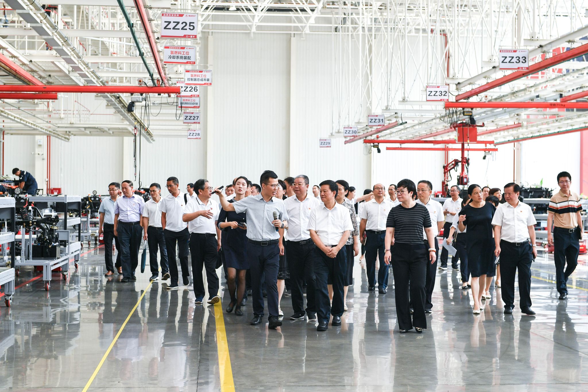 上午,蒋洪新一行参观了三一集团重卡生产车间、加氢站、18号灯塔工厂和在建合作附属学校云湖实验小学,详细了解三一的发展历程、经营成果、智能制造以及双方合作办学等情况。