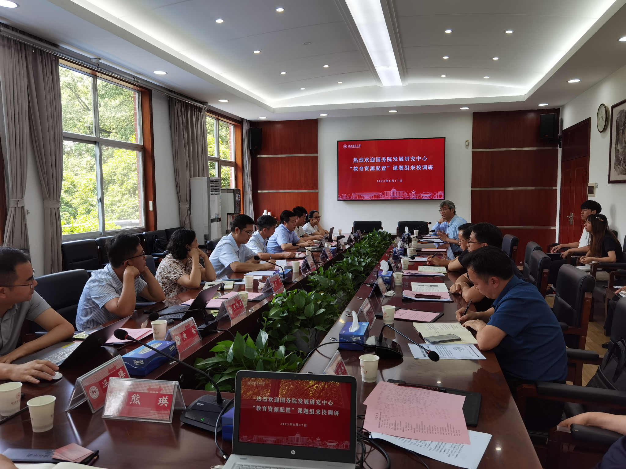 (通讯员 王照淼)8月17日上午,国务院发展研究中心公共管理与人力资源研究所副所长刘理晖一行来校开展“教育资源配置”专题调研。调研座谈会在校办公楼二会议室举行。教育厅党组成员、副厅长左清和我校副校长刘怀德出席会议。座谈会由湖南省人民政府发展研究中心二级巡视员蔡建河主持。