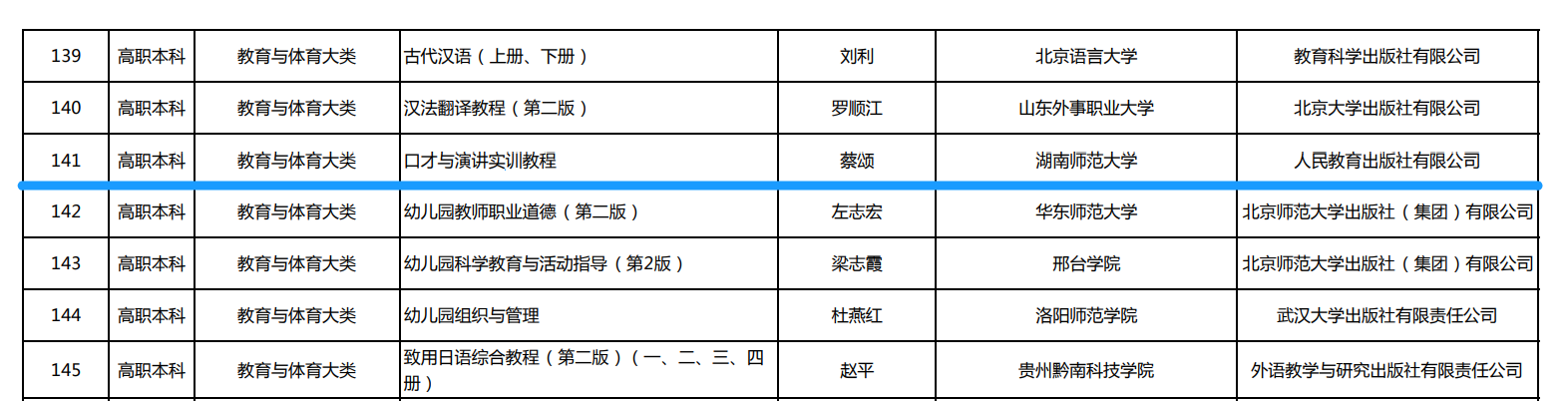 (通讯员 安宁 杨洋)近日,教育部办公厅印发了《安博线上平台公布首批“十四五”职业教育国家规划教材书目的通知》,由我校国际汉语文化学院院长蔡颂教授主编的《口才与演讲实训教程》成功入选,是我省高校在“高职本科组—教育与体育大类”中的唯一入选教材。