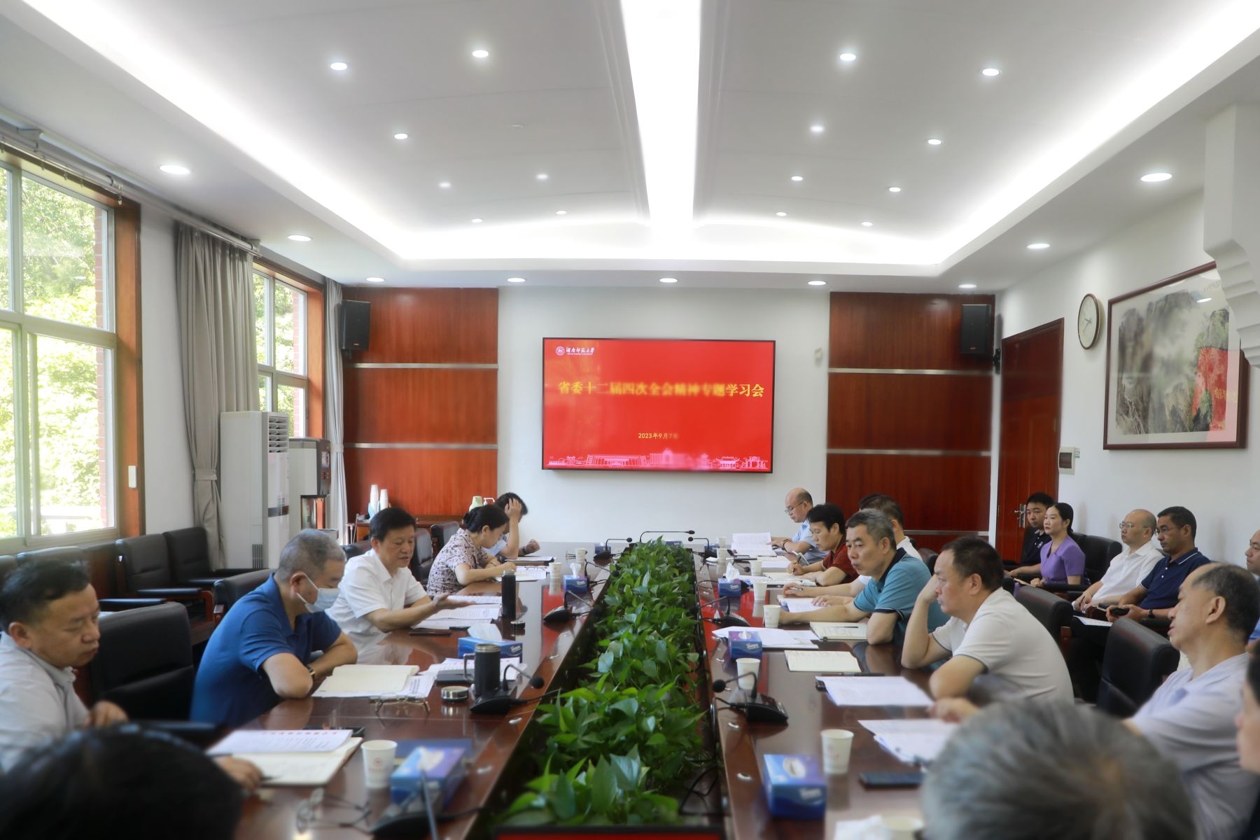 (记者 吴乐 马铁泉)9月7日上午,我校召开校党委理论学习中心组学习会,专题传达学习省委十二届四次全会精神,研究部署贯彻落实工作。校党委书记蒋洪新主持会议。