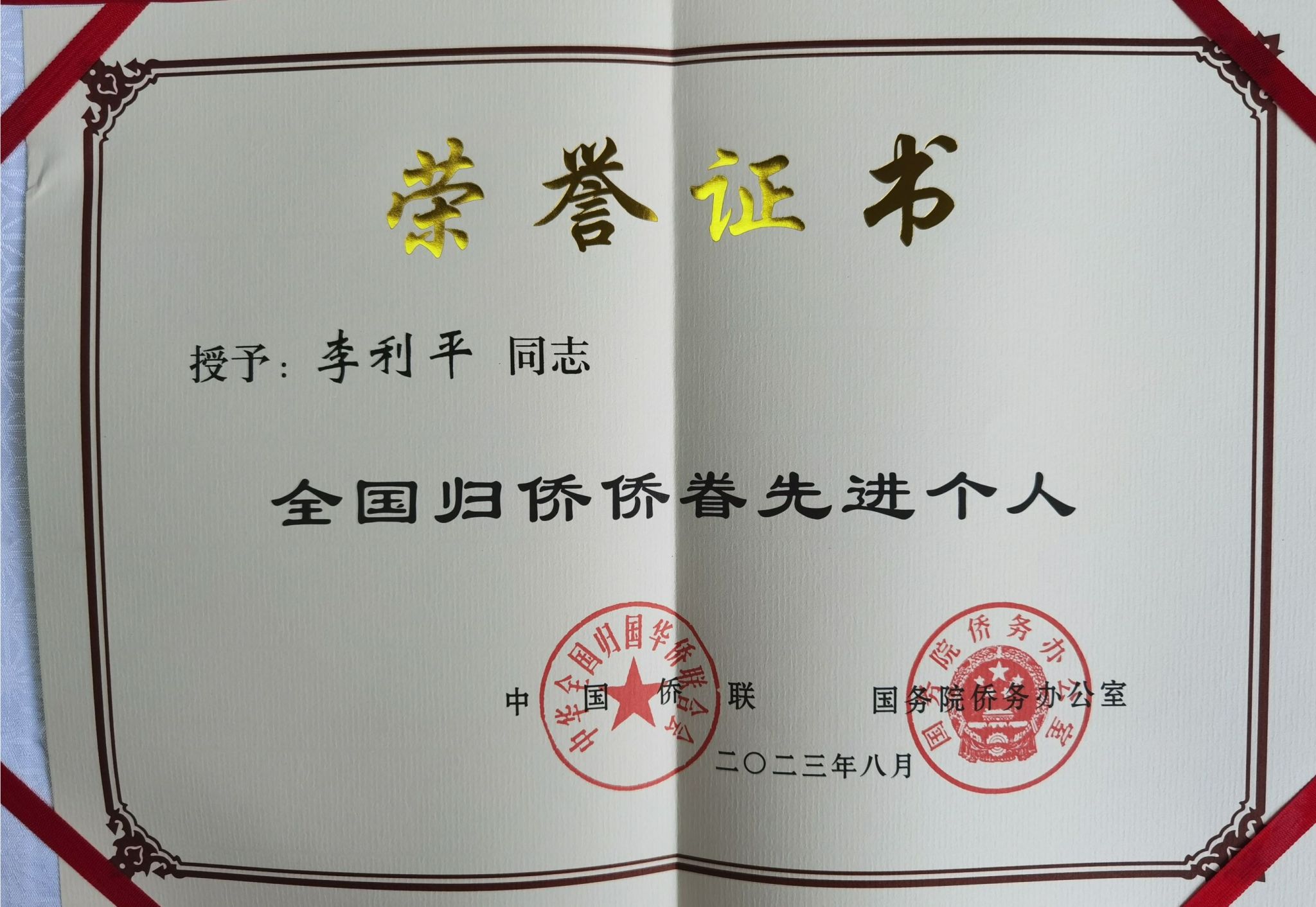 (供稿 党委统战部)近日,第十一次全国归侨侨眷代表大会在北京人民大会堂开幕。会上宣读了《中国侨联、国务院侨办安博线上平台表彰中国侨界杰出人物和全国归侨侨眷先进个人的决定》《人力资源社会保障部、中国侨联安博线上平台表彰全国侨联系统先进集体和先进工作者的决定》《中国侨联安博线上平台表彰全国侨联系统先进组织和先进个人的决定》,并为获奖单位和个人颁奖。我校侨联主席、数学与统计学院院长李利平教授荣获“全国归侨侨眷先进个人”荣誉称号。