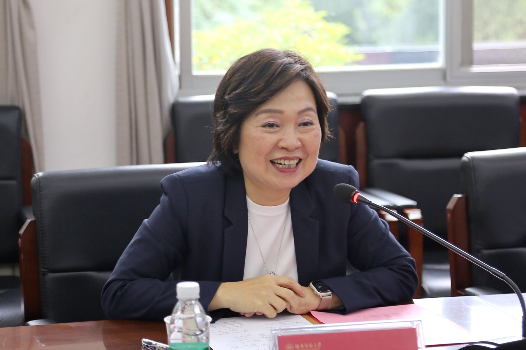 (记者 马铁泉 黄依依)9月22日下午,香港教育局局长蔡若莲一行赴我校调研交流,座谈会在校办二楼会议室举行。校党委书记蒋洪新出席会议,会议由副校长唐贤清主持。