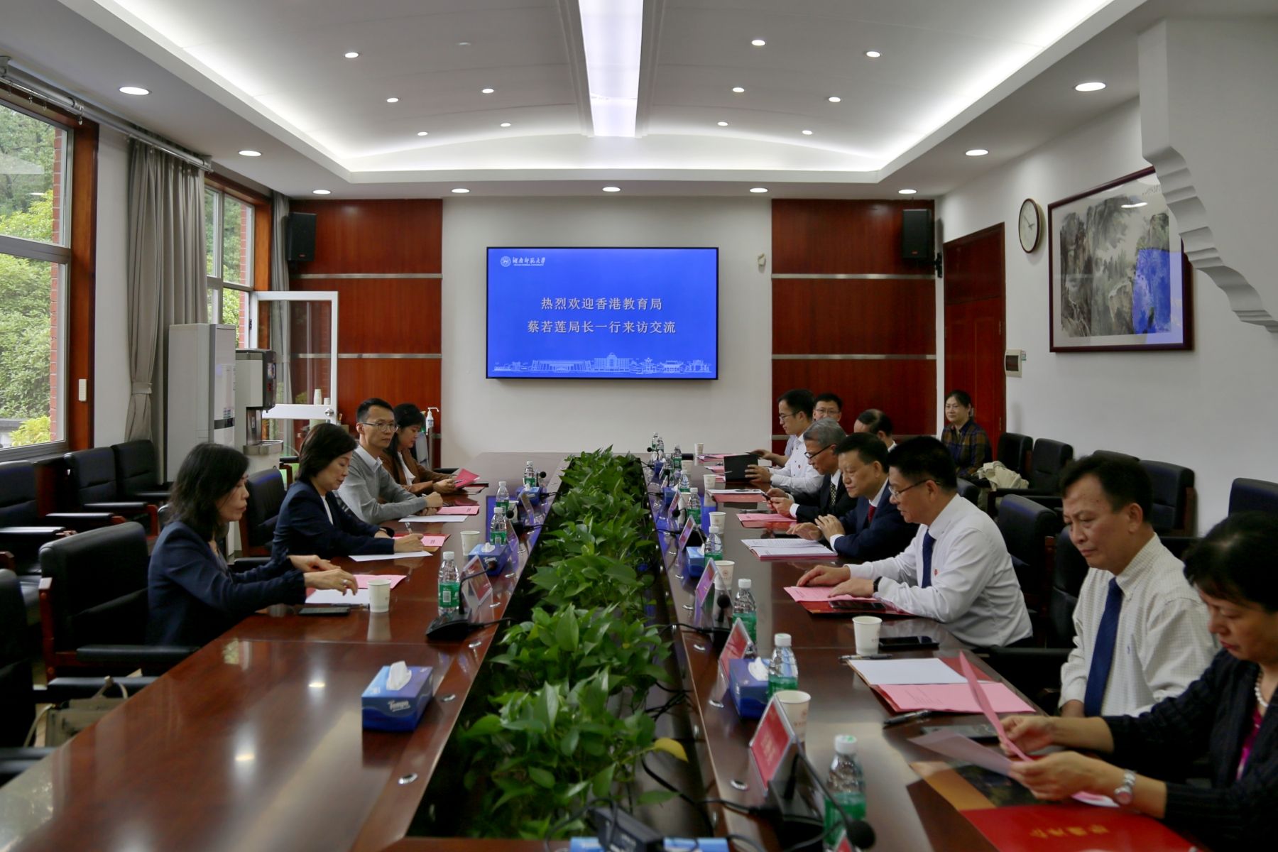 蒋洪新对蔡若莲一行的来访表示热烈欢迎。他详细介绍了学校的办学历程、办学规模、学科建设、基础教育、师资队伍建设等,分享了他前往香港讲学的经历。他表示,希望双方能够加强沟通、深化合作,共同为教育事业的发展添砖加瓦。