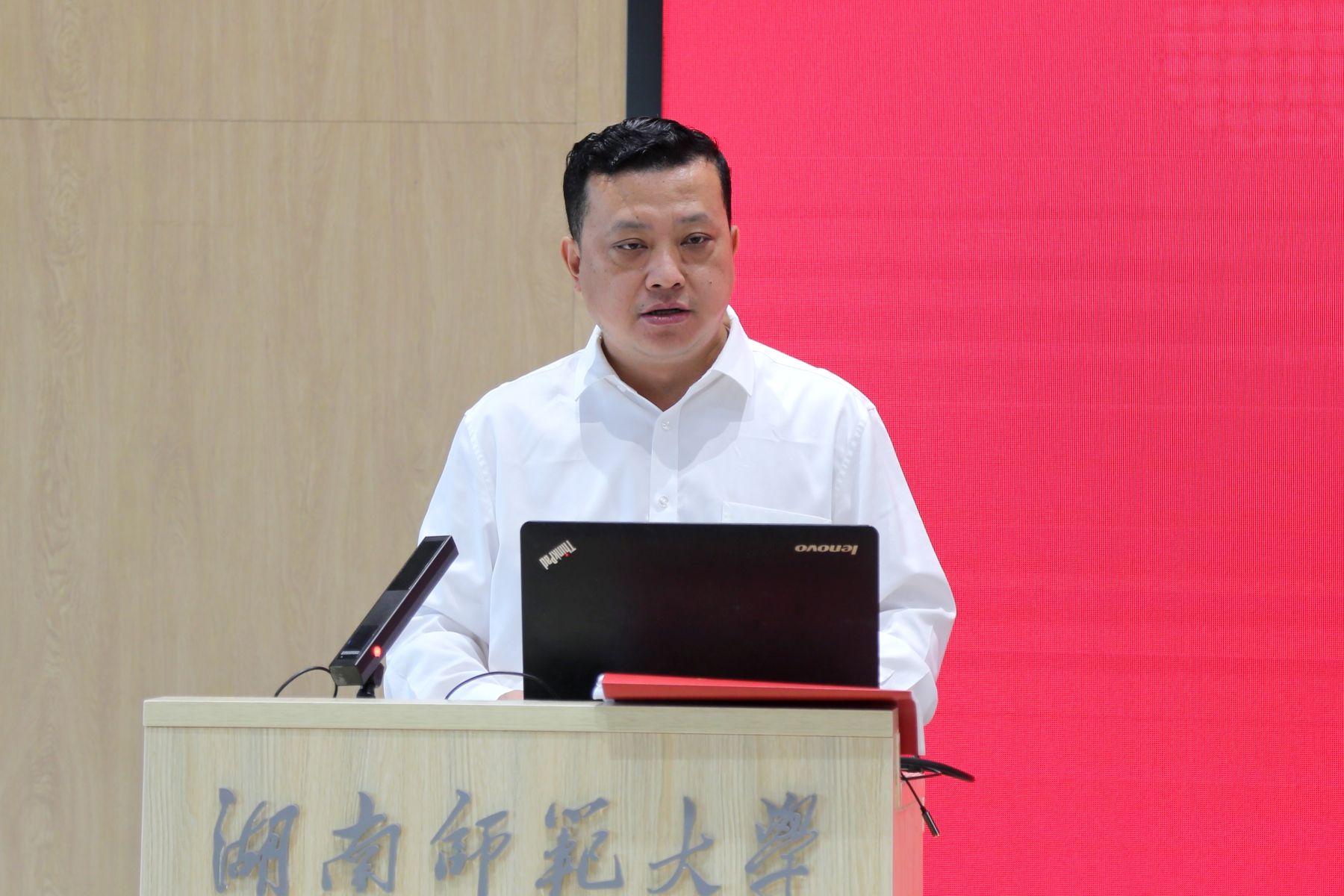 黄玉龙对基地的成立表示热烈祝贺,并对我校的精心筹备表示感谢。他表示,共建翻译研究与实践基地是外文局翻译院与湖南师大外国语学院联合培养高端翻译人才的有益尝试,也是加快落实中央安博线上平台全国翻译人才自主建设战略部署的具体举措。实践基地可以为双方开展深层次、多领域的合作搭建平台。他对基地的建设提出了三点希望:一是要聚焦国家战略需求,大力加强国家翻译能力建设。外文局翻译院愿与湖南师大一道,以服务国家总体战略为出发点,聚焦多语种翻译研究、实践创新和人才培养,共同打造一支懂语言、精专业、通传播的翻译国家队;二是要坚持应用导向,打造高端翻译人才蓄水池。翻译实践基地是政产学研用一体化合作培养高层次人才的重要形式,为学生的发展提供有力支撑,让学生在实践、历练和磨炼中逐渐成长为高端翻译人才、政治行业领军人才乃至名家大师。三是要抓好督促落实,推动基地建设走深走实。要建立科学有效的协同协作机制,继续加强沟通配合,推行行业学业双导师制,开展课题联合攻关、项目协作、管理培训、经验交流、部门协作等,推动基地项目常态化运行,形成以培养高素质翻译人才为目标的可持续发展实践平台,为推动国家翻译能力建设和国际传播能力建设提供坚实的人才支撑。