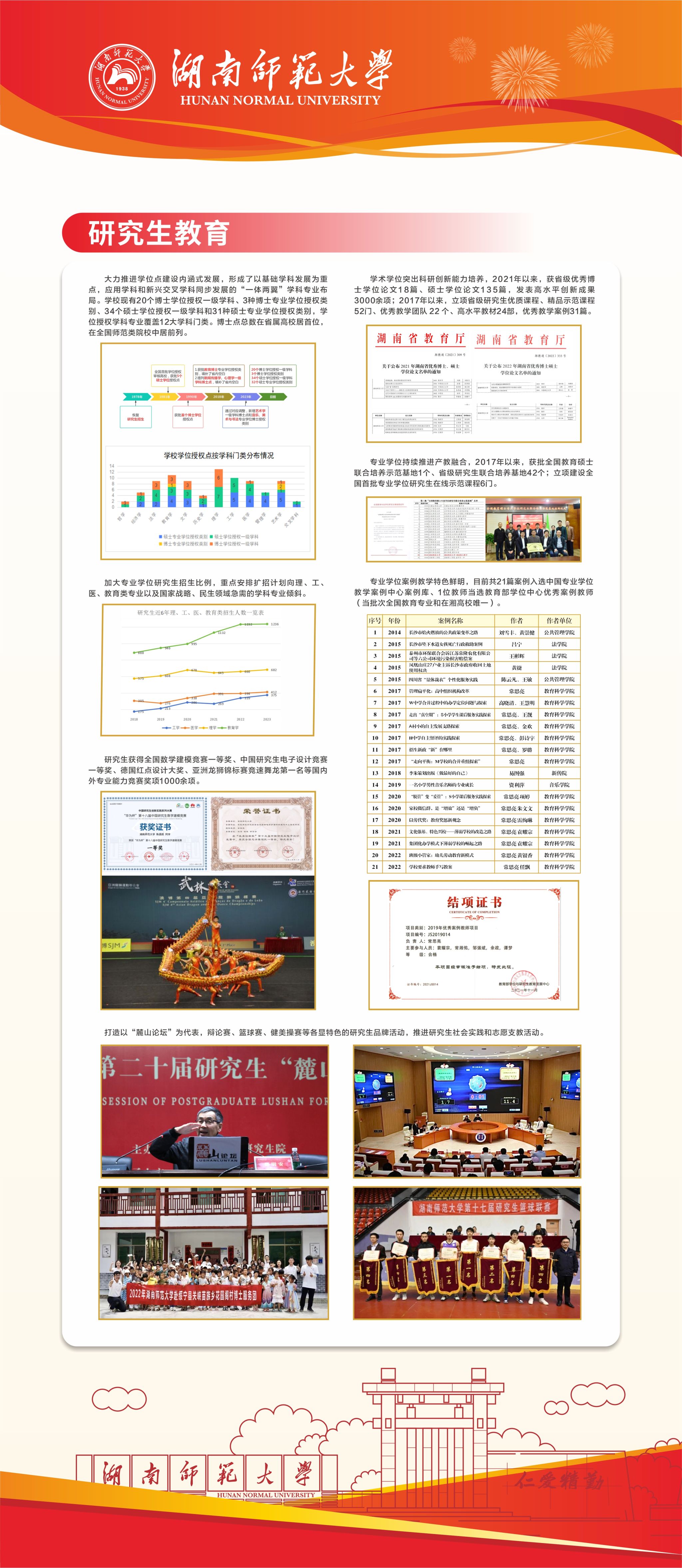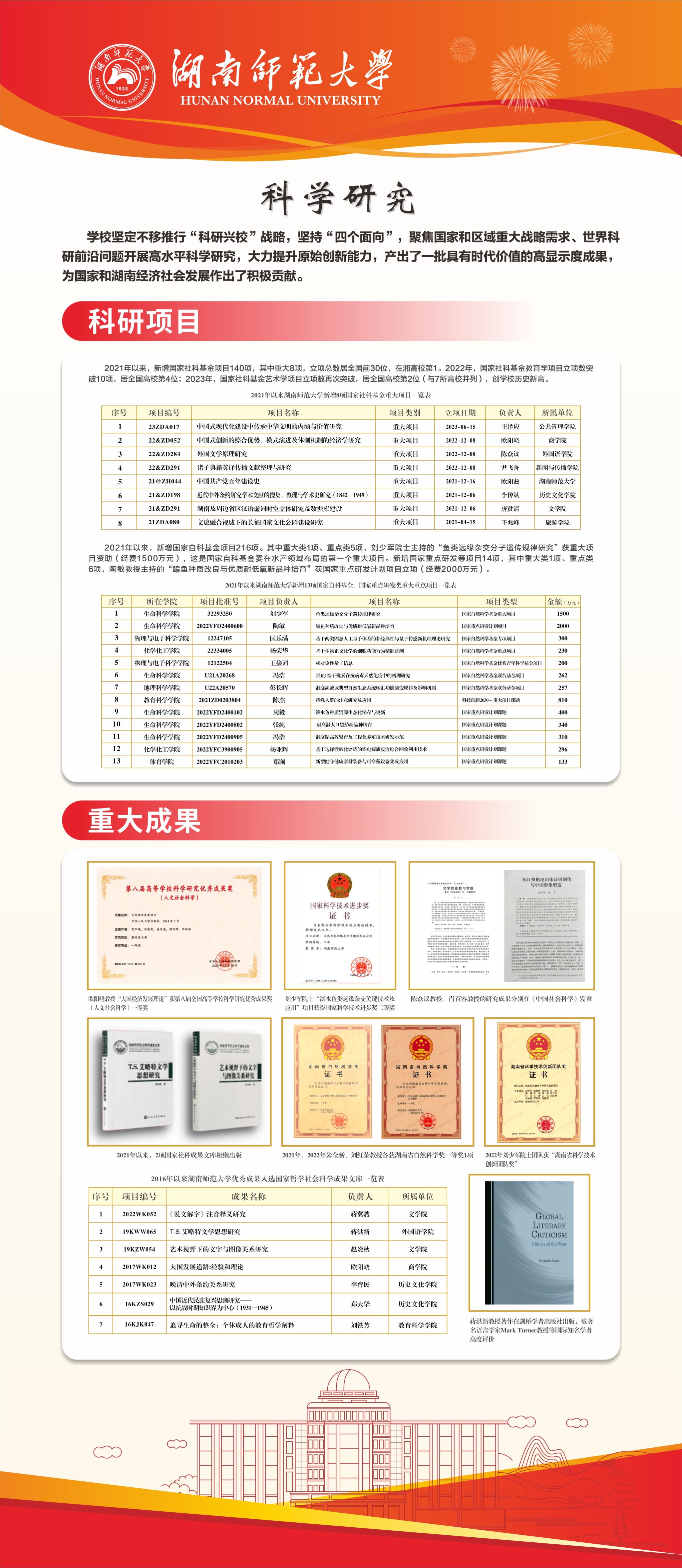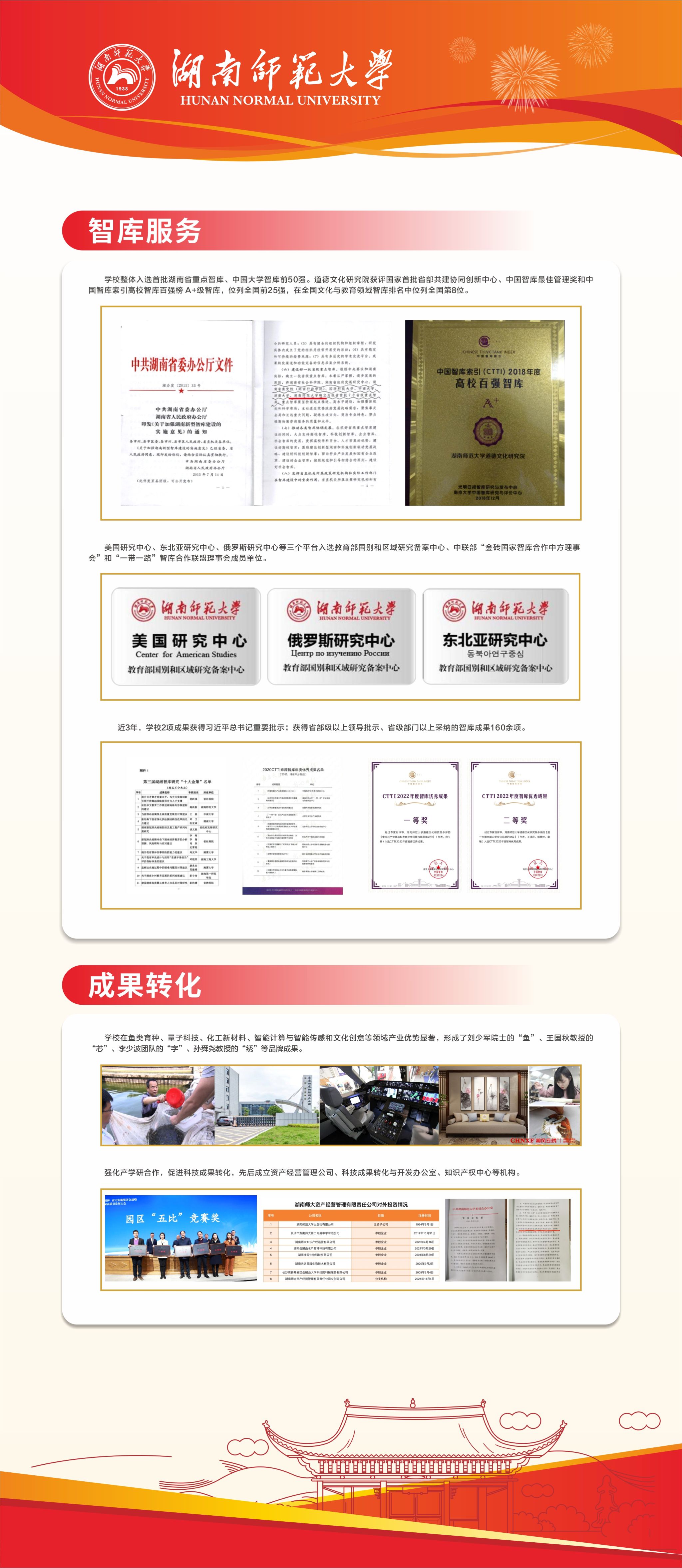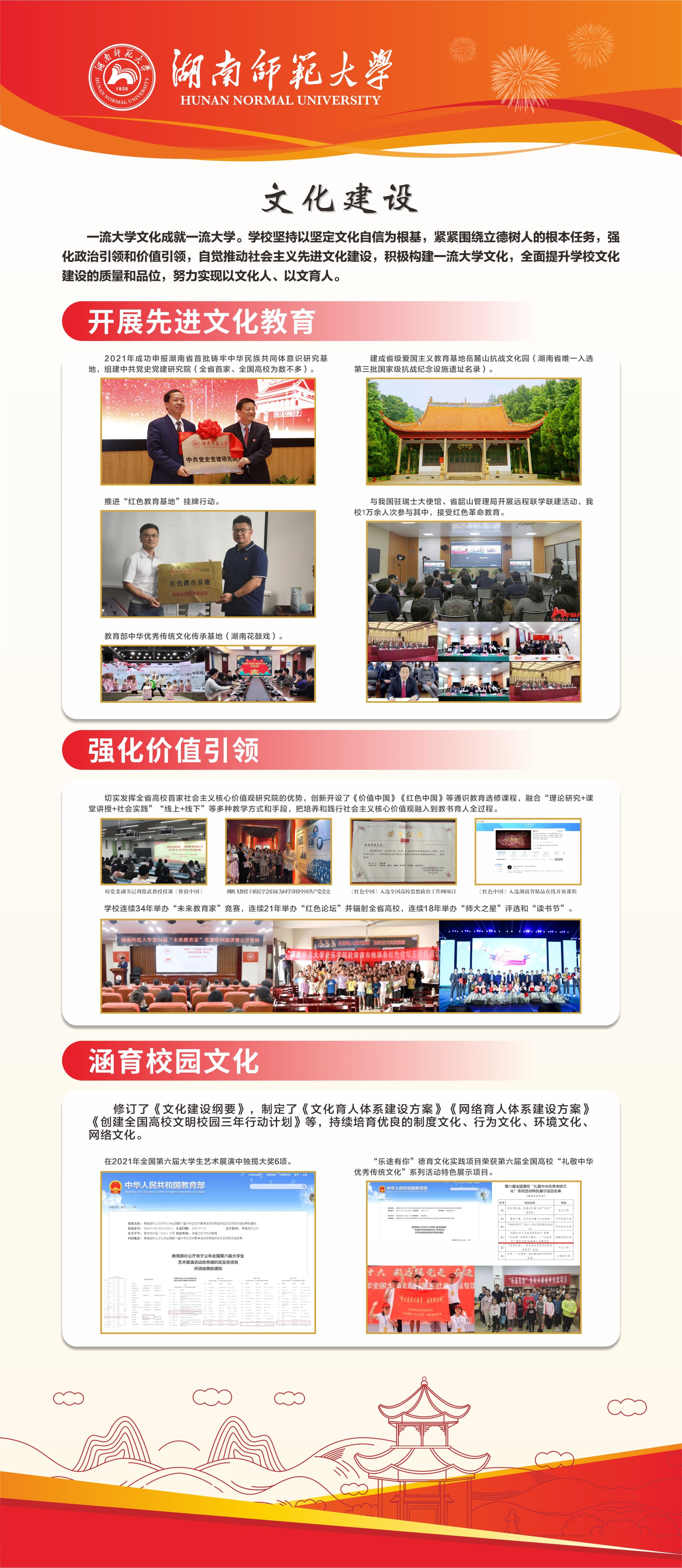近年来,学校紧扣“中国特色、世界一流”,扎根中国大地、湖湘大地稳扎稳打,坚定落实立德树人根本任务,着力培养一流人才、产出一流成果、提供一流服务,迸发出强劲发展动能。党建工作达到新高度,学科发展获得新突破,育人质量迈入新层次,人才梯队实现新跨越,科学研究跨上新台阶,社会服务展开新气象,对外开放呈现新格局,文化建设形成新品质,环境建设达到新水平,学校综合实力与核心竞争力明显增强,社会声望和影响力显著提升,迈入到进步最快、发展最好的新的历史阶段。