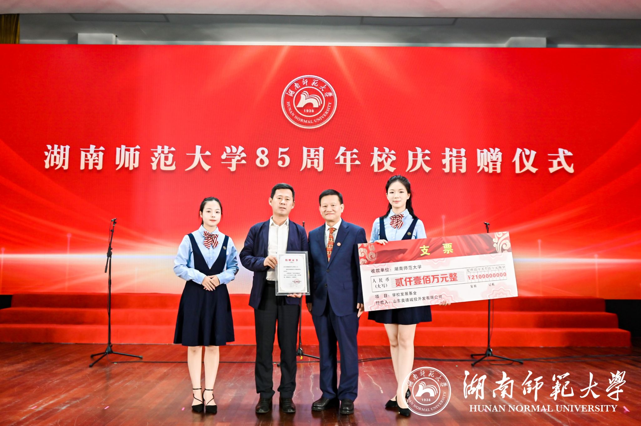 山东奥德城投开发有限公司向我校捐赠。