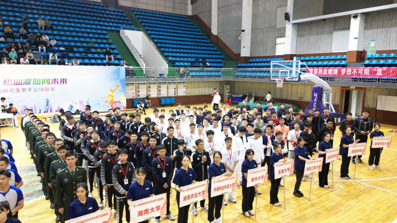(记者 张尧钰 李影)10月27日下午,由湖南省教育厅、省人民政府学位委员会办公室主办,我校承办的第十七届湖南省高校研究生男子篮球联赛开幕式在我校南院校区行健馆举行。此次开幕式由我校研究生院党委书记龚舒主持,省教育厅学位管理与研究生教育处二级调研员刘梦清,我校党委委员、纪委书记姚春梅教授出席开幕式。