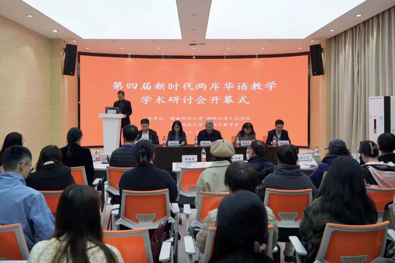(通讯员 黄林键)11月17日至18日,第四届新时代两岸华语教学学术研讨会在我校召开。会议开幕式于11月17日上午在我校励德楼345会议室举行,湖南省台办交流合作处二级调研员舒洪涛、我校副校长唐贤清出席开幕式。