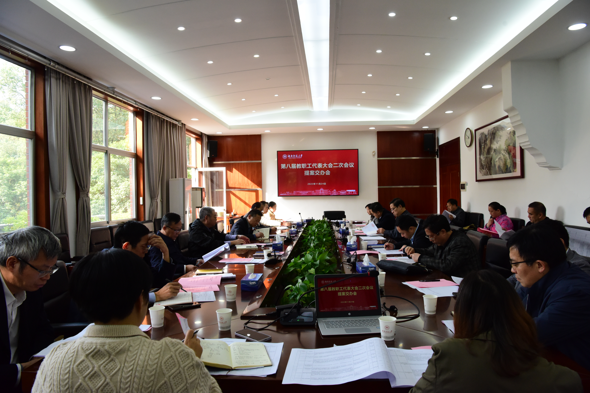 (记者 夏文静 宋晨)11月24日上午,我校第八届教职工代表大会二次会议提案交办会在校办公楼二会议室召开。校党委副书记周俊武、副校长刘怀德出席会议。会议由校长办公室主任肖新祥主持。