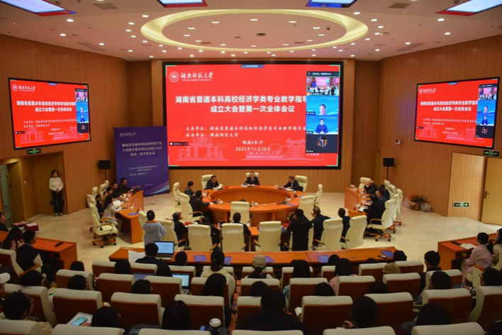 (供稿 商学院)11月25日下午,湖南省普通本科高校经济学类专业教学指导委员会成立大会暨第一次全体委员会议在我校图书馆报告厅召开。教育部经济学类专业教学指导委员会主任、国务院学位委员会理论经济学学科评议组召集人、中国人民大学原校长刘伟,教育部经济学类专业教学指导委员会副主任、中国科学院大学经济与管理学院院长洪永淼出席会议,我校副校长、湖南省普通本科高校经济学类专业教学指导委员会主任刘子兰主持会议。