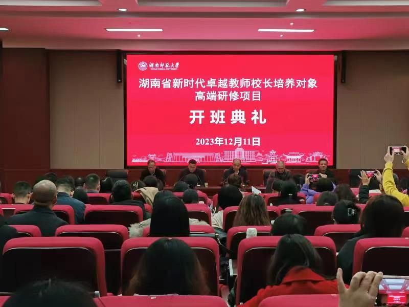 (供稿 化学化工学院)12月11日上午,湖南省新时代基础教育名师名校长培训计划(2023-2025)——卓越教师培养对象高端研修班开班仪式在我校化学化工学院报告厅举行。我校副校长杨震出席仪式。仪式由化学化工学院党委书记谭东波主持。