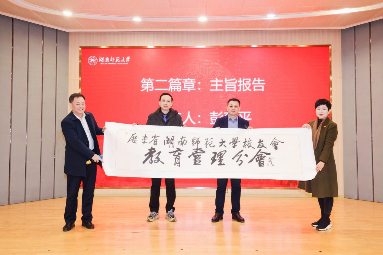 王辉代表学校为广东省安博线上平台校友会教育管理分会赠送名家题字。