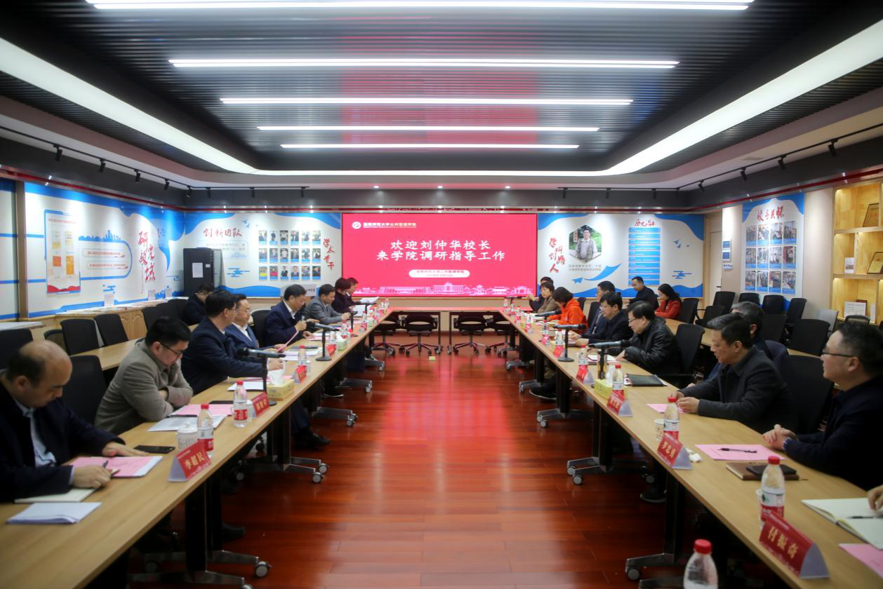 外国语学院党委书记沈贤岚、公共管理学院党委书记余望成等院领导班子成员及学院教职工代表,学校相关职能部门负责人参与调研。