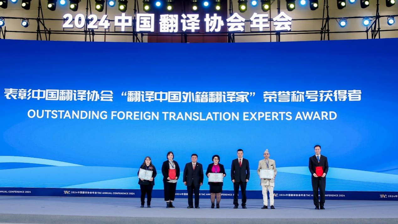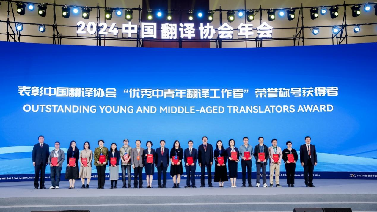 (供稿 外国语学院)3月30日,由中国翻译协会、中国外文局翻译院与我校主办的2024中国翻译协会年会在长沙召开。开幕式上举行了“翻译文化终身成就奖”“资深翻译家”“翻译中国外籍翻译家”表彰仪式,并首次对“优秀中青年翻译工作者”进行表彰。我校语言与文化研究院翻译传播研究所所长尹飞舟教授被授予“资深翻译家”荣誉称号,外国语学院吴漠汀(Martin Woesler)教授被授予“翻译中国外籍翻译家”荣誉称号,外国语学院余承法教授和王琼老师被授予“优秀中青年翻译工作者”荣誉称号。