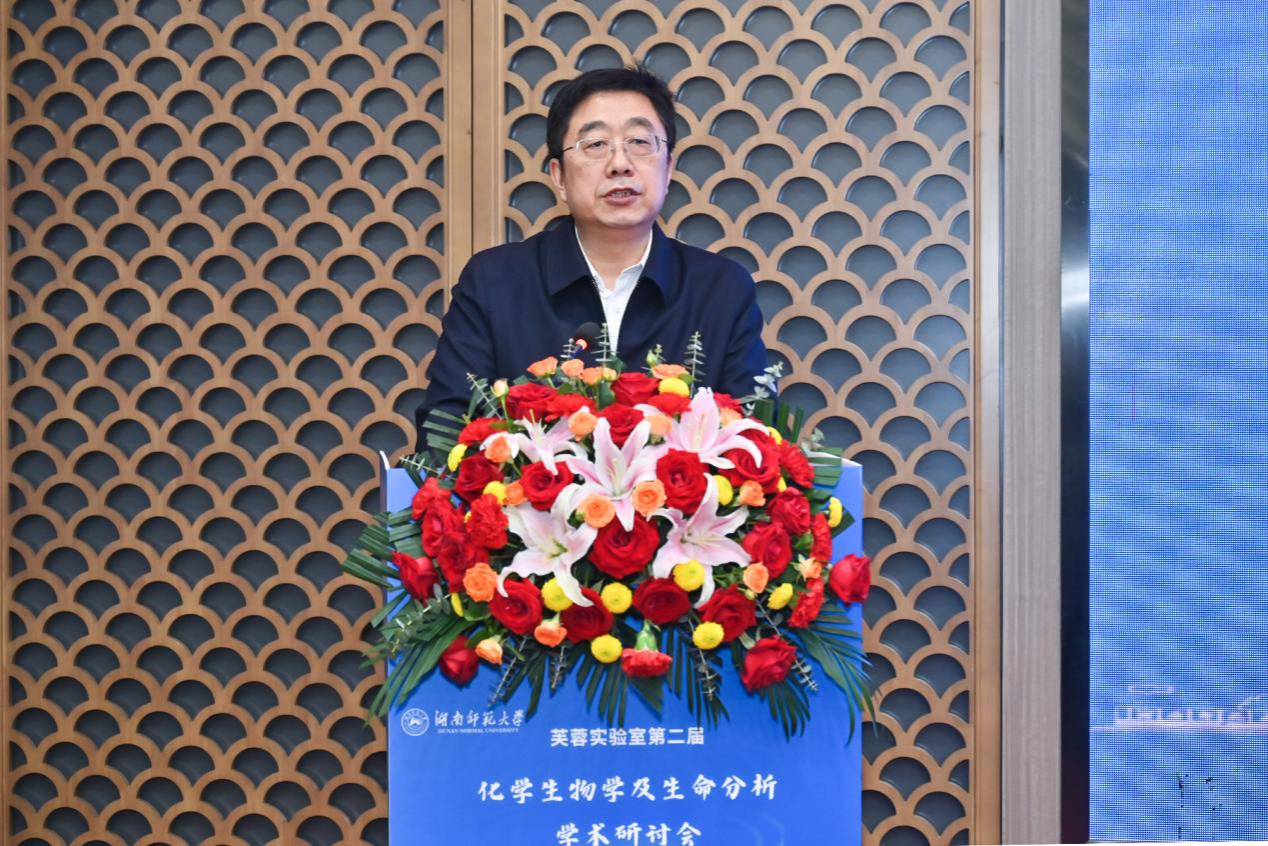 (通讯员 唐健清 段叶蕤 任天阔)4月6日上午,由芙蓉实验室、我校化学化工学院、化学生物学及中药分析教育部重点实验室和交叉科学研究院共同主办的第二届“化学生物学及生命分析”学术研讨会在长沙开幕。中国科学院院士谭蔚泓,北京师范大学副校长陈兴,湖南省科学技术协会副主席陈松,中南大学湘雅医学院常务副院长、芙蓉实验室副主任武明花,我校校长、中共第二十届中央候补委员、中国工程院院士刘仲华出席开幕式。开幕式由我校副校长潘安练主持。