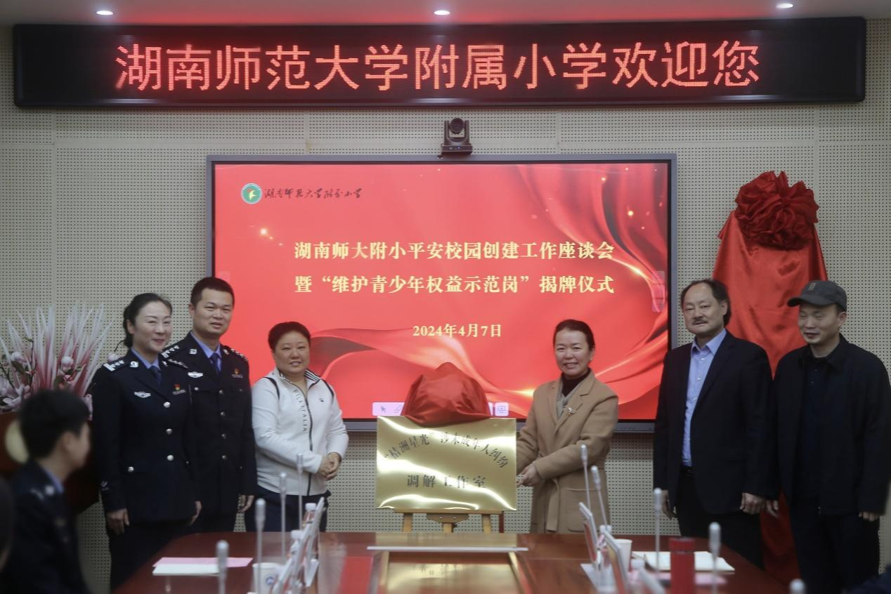 (记者 朴佳琪 薛舒丹 张婧茹)4月7日上午,我校附属小学平安校园创建工作座谈会暨“维护青少年权益示范岗”揭牌仪式在附小远思楼第一会议室举行。副校长唐贤清、王辉出席会议,附小副校长周玮主持会议。