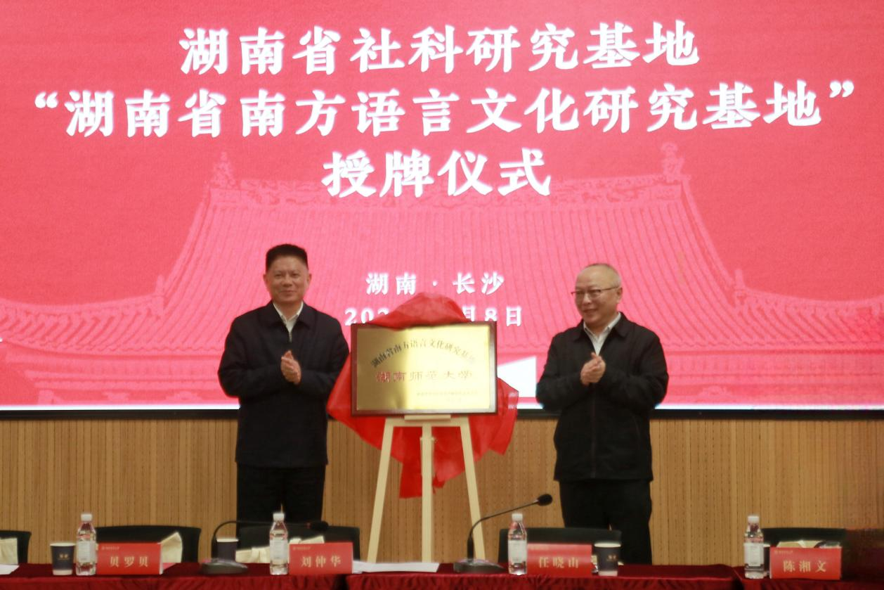 随后,任晓山代表湖南省委宣传部向我校“湖南省南方语言文化研究基地”授牌。