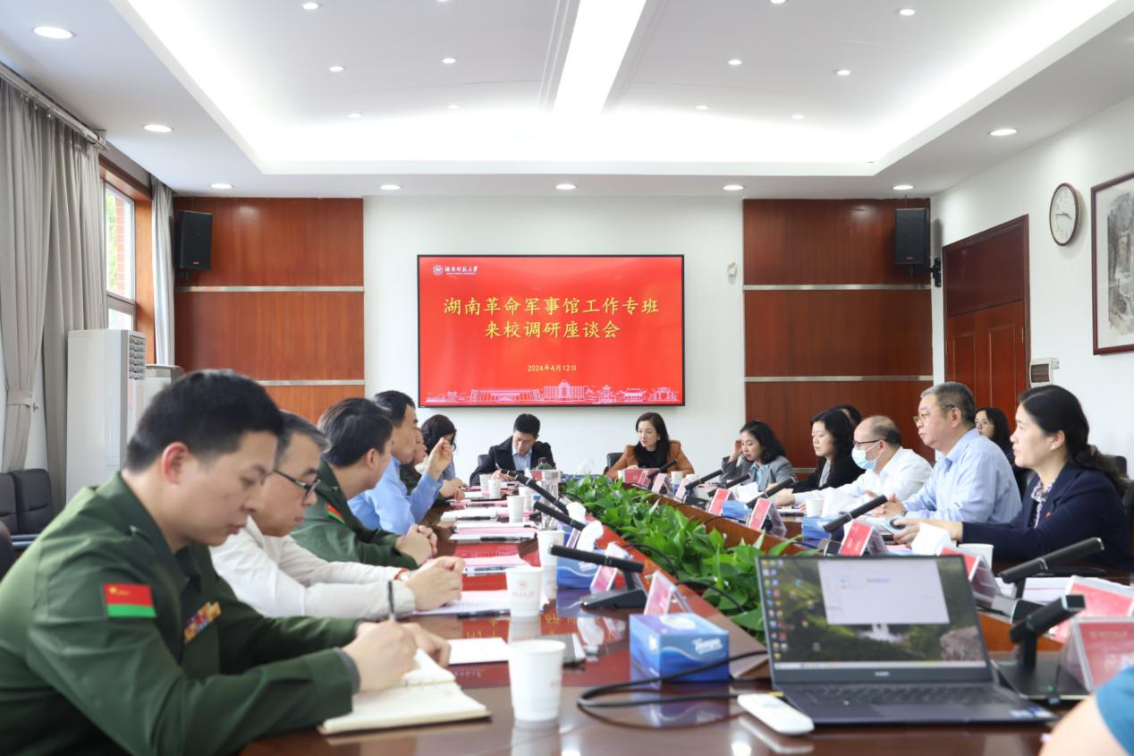 湖南博物院、省退役军人服务中心、长沙警备区、岳麓区人民武装部和我校相关单位负责人、部分专家参加座谈会。