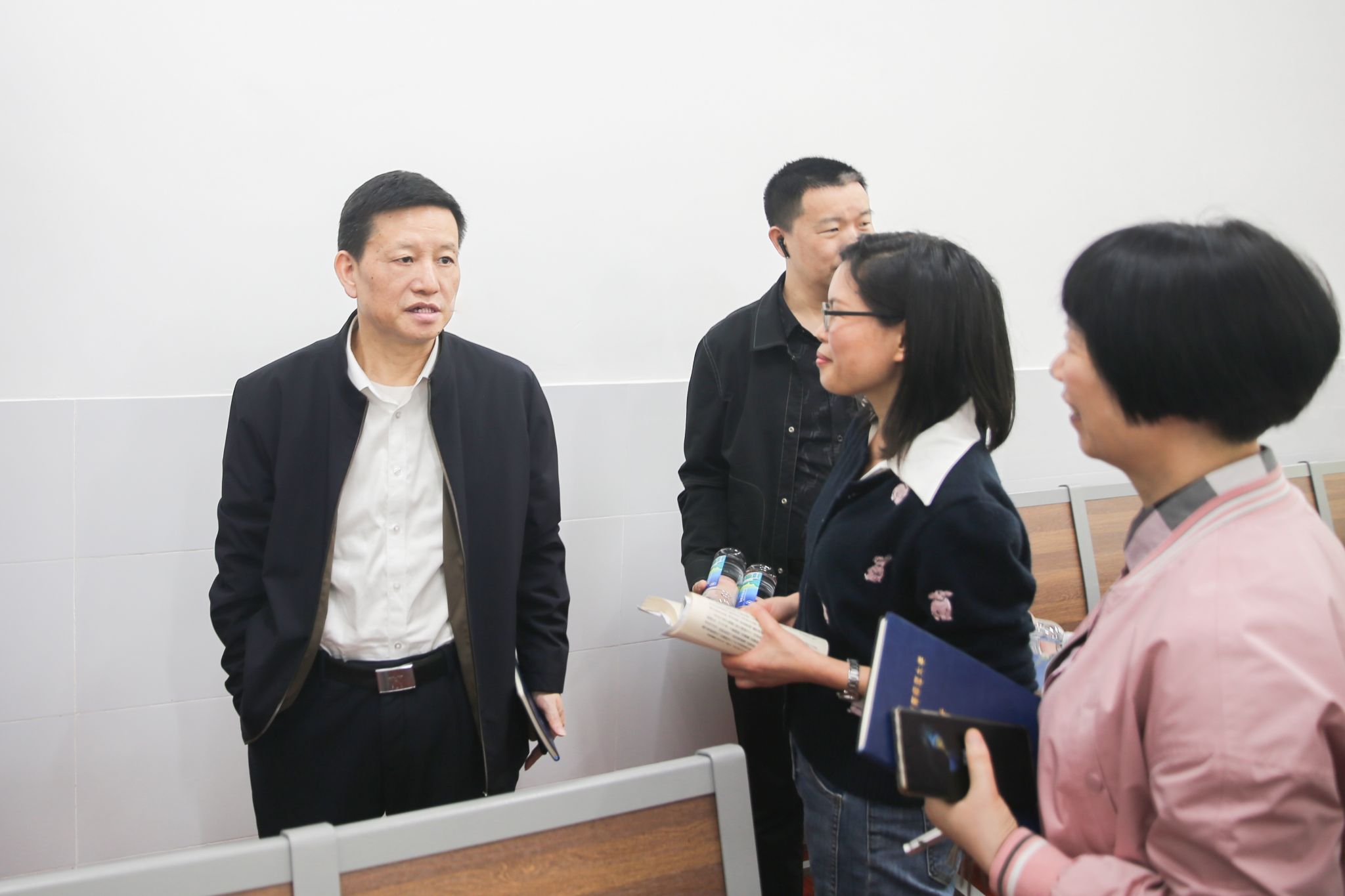蒋洪新先后走访了文学院、历史文化学院的重点学科资料室、教研室、教师办公室、文化展示长廊等区域,实地了解学院教育教学设施建设、教学工作运行等情况,并与师生亲切交流,对教师们的辛勤付出表示感谢。
