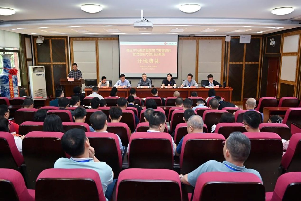 (供稿 文学院)近日,嘉应学院高质量发展与教育培训管理者能力提升研修班在我校文学院216报告厅举行开班仪式。副校长蒋新苗出席仪式。