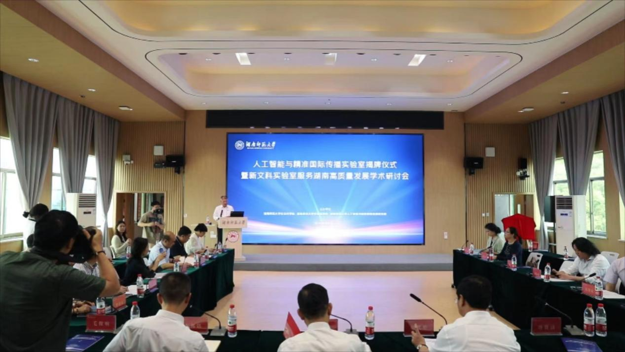(通讯员 赵思雅 马小雪)5月16日上午,我校人工智能与精准国际传播实验室揭牌仪式暨新文科实验室服务湖南省高质量发展学术研讨会在腾龙楼613学术报告厅举行。湖南省社科联党组书记、副主席(主持日常工作)胡代松,我校党委书记、欧洲科学院院士蒋洪新出席并讲话,会议由副校长唐贤清主持。