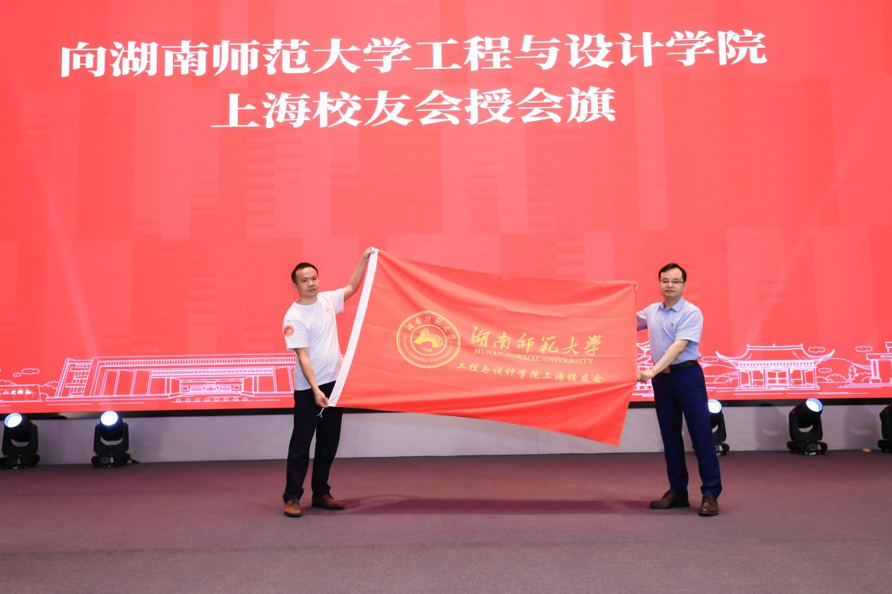 潘安练向工程与设计学院上海校友会授会旗,并向会长颁发聘书。他对工程与设计学院上海校友会成立表示热烈祝贺,并对校友长期关注和支持母校建设表示衷心感谢。他希望校友与母校共同构建发展共同体,实现校友个人事业和母校事业的双向奔赴。