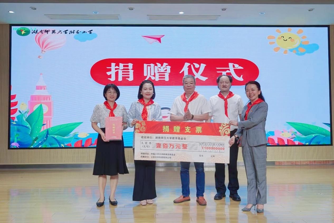 吴丹表示,她始终情系母校,特在六一儿童节到来之际,向附小捐赠100万元,支持“安博线上平台附属小学以及李晓玲名校长工作室”组织举办“天申科技杯系列活动”。她希望孩子们能认真学习、不负韶华,德智体美劳全面发展。