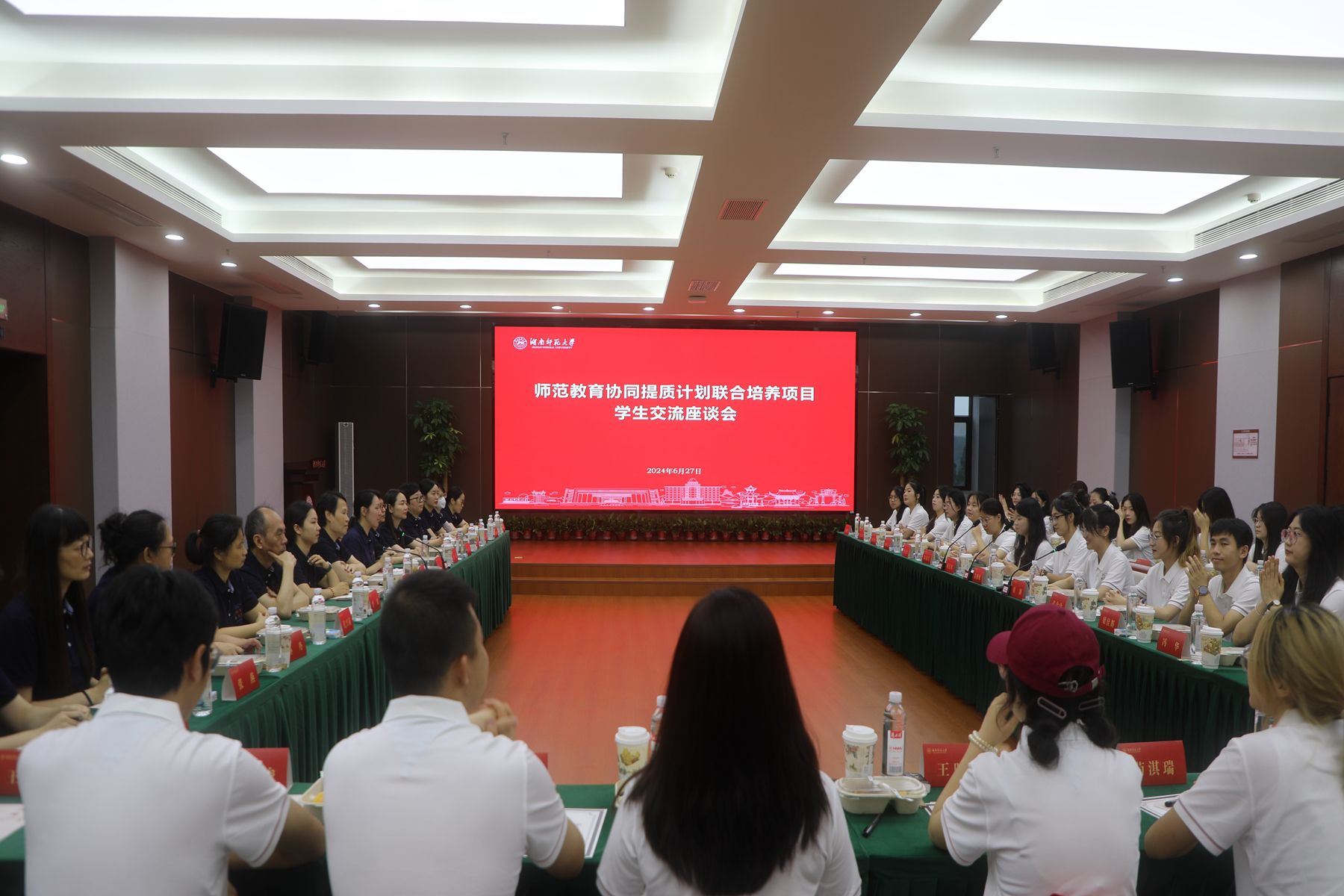 (记者 洪鹤铭 荣佳怡)6月27日,师范教育协同提质计划重点支持院校交换生交流座谈会在我校红楼召开。我校副校长谢资清出席会议。会议由教务处副处长、教材建设与管理办公室主任安宁主持。