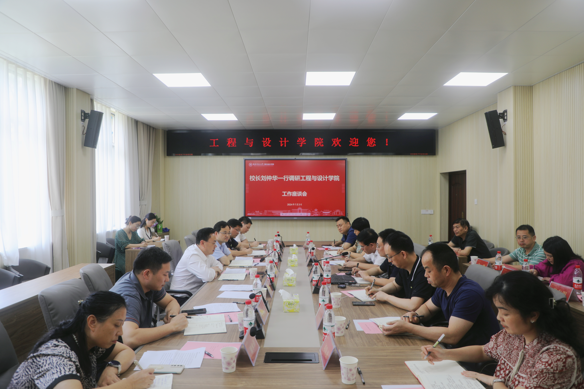 在工程与设计学院,刘仲华详细了解了学院“四系一所八专业”的基本架构和发展思路,并对学院新工科建设、职业教育取得的成绩给予高度认可。他表示,学院兼具师范优势和职教特色,在学科交叉融合发展方面成绩出色。他希望学院进一步凝练学科发展方向,突出特色和优势,不断培育社会所需的高层次人才,一是要突出顶层设计的针对性、引领性和协同性,加强工科与艺科、老牌学科的联合联动,推动各学科优势互补,实现学科高质量发展;二是要加强师资队伍建设,高标准推进人才引进工作,高水平搭建教学科研基地与平台;三是要落实职业教师培养提升计划,各部门联动,实现内外资源优化整合,完善成果评价机制,合力推动学院工作高质量发展。