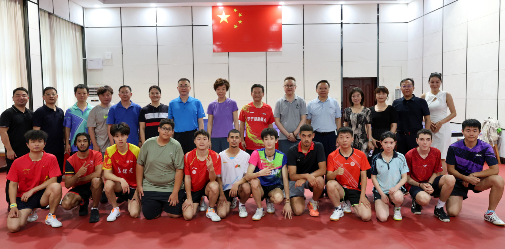 国际乒联副主席、中国乒乓球学院院长、前乒乓球国家队主教练施之皓,中国乒乓球学院院长助理张怡宁和来自巴布亚新几内亚、阿尔及利亚的5名上海体育大学学生运动员与我校师生进行了乒乓球友好交流互动。