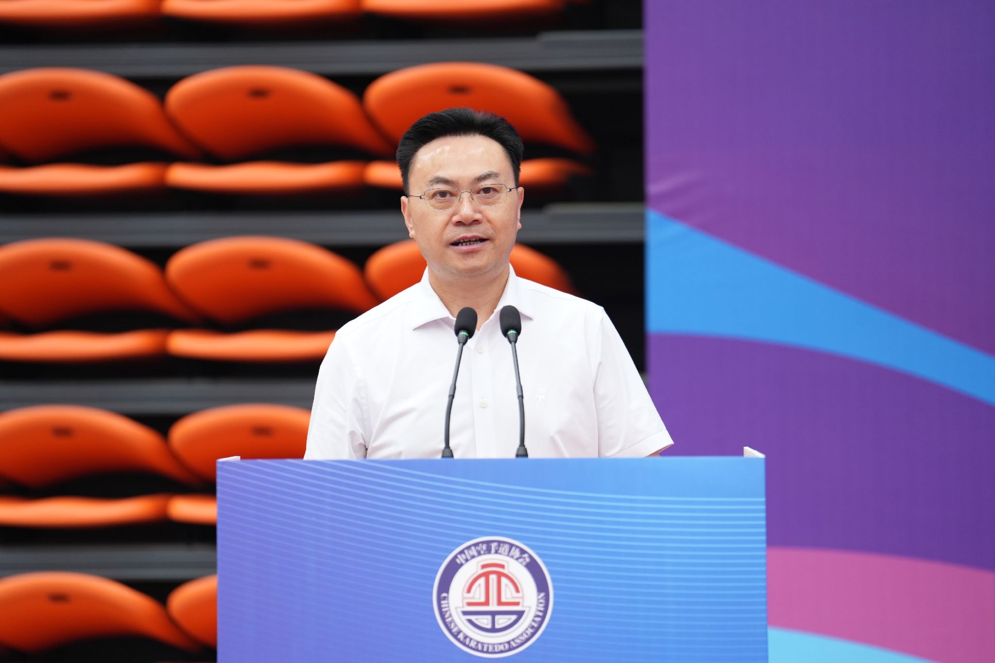 张连标在致辞中指出,习近平总书记高度重视体育强国建设,多次强调体育是提高人民健康水平的重要途径,也是实现中国梦的重要内容。在省委省政府领导下,我省一直以来高度重视体育事业的发展。“体育湘军”在国际赛事表现出色,巴黎奥运会中15名湖南健儿斩获佳绩。他希望此次比赛能激发社会对于空手道和体育活动的兴趣,为早日建成“体育强国”的目标而努力。