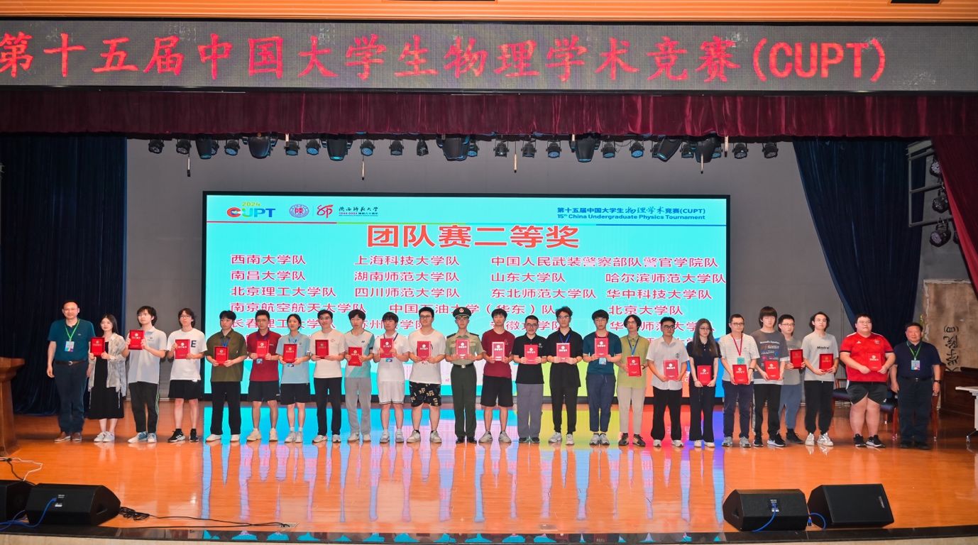 (供稿 物理与电子科学学院)8月19日至22日,第十五届中国大学生物理学术竞赛(CUPT)在陕西师范大学举行。我校代表队从68支入围队伍中脱颖而出,荣获二等奖,2022级物理学专业易佳雄获得“最佳正方奖”,学校代表队荣获2025年全国竞赛的直通资格。