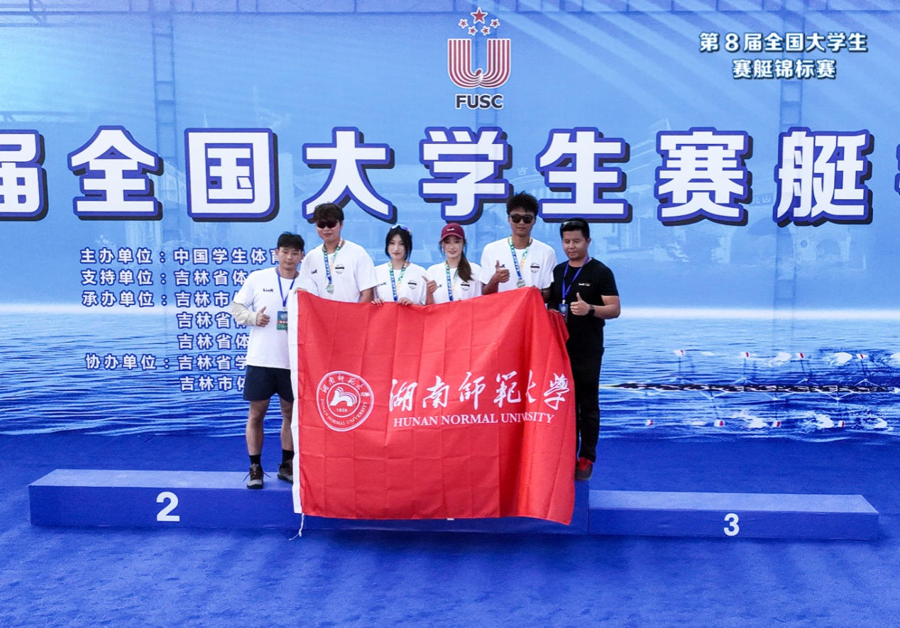(供稿 体育学院)8月23日至24日,第八届全国大学生赛艇锦标赛在吉林市松花江举行。我校体育学院运动训练专业学子组成的领客赛艇队代表湖南省高校出赛,经过两天的激烈角逐,最终石文超、韩金洛、洪佳静、任锦夺得混合四人双桨500米、1000米两项第一名,马久乐、任子乐、张文骞、白浪浪夺得男子四人双桨1000米第二名,马久乐、张文骞夺得男子双人双桨1000米第二名,任子乐、白浪浪夺得男子双人双桨1000米第三名,共两金两银一铜的佳绩。