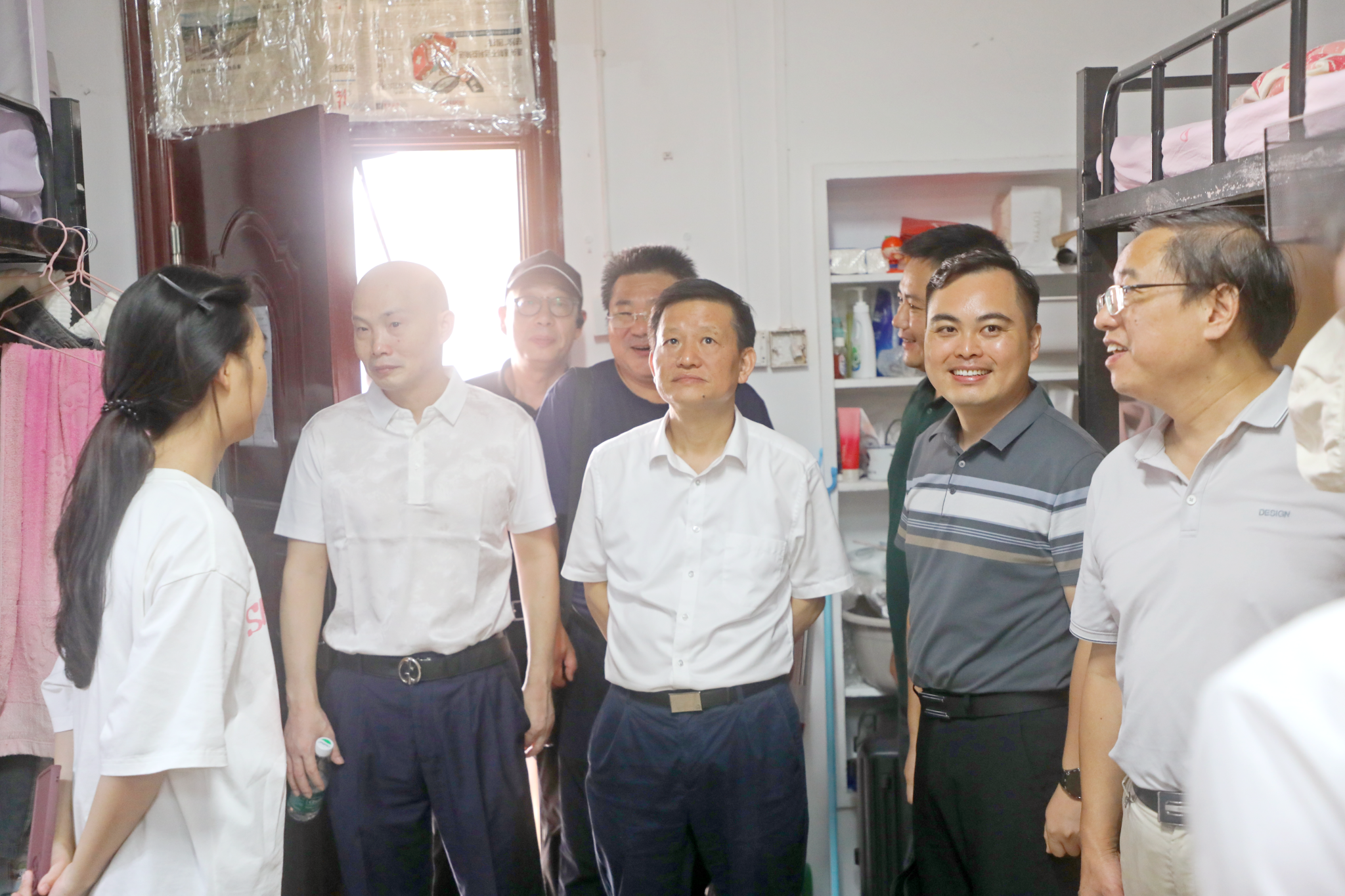 座谈会后,蒋洪新前往二里半宿舍调研,深入宿舍与学生交流,了解学生宿舍情况,并提出三点要求:一是要充分利用宿舍楼空间,合理规划,为学生提供便捷的生活区域;二是加强学生宿舍管理,开展卫生检查,保持环境整洁;三要重视校园安全工作,加强食品安全、消防、用电等保障,守护学生生命财产安全。