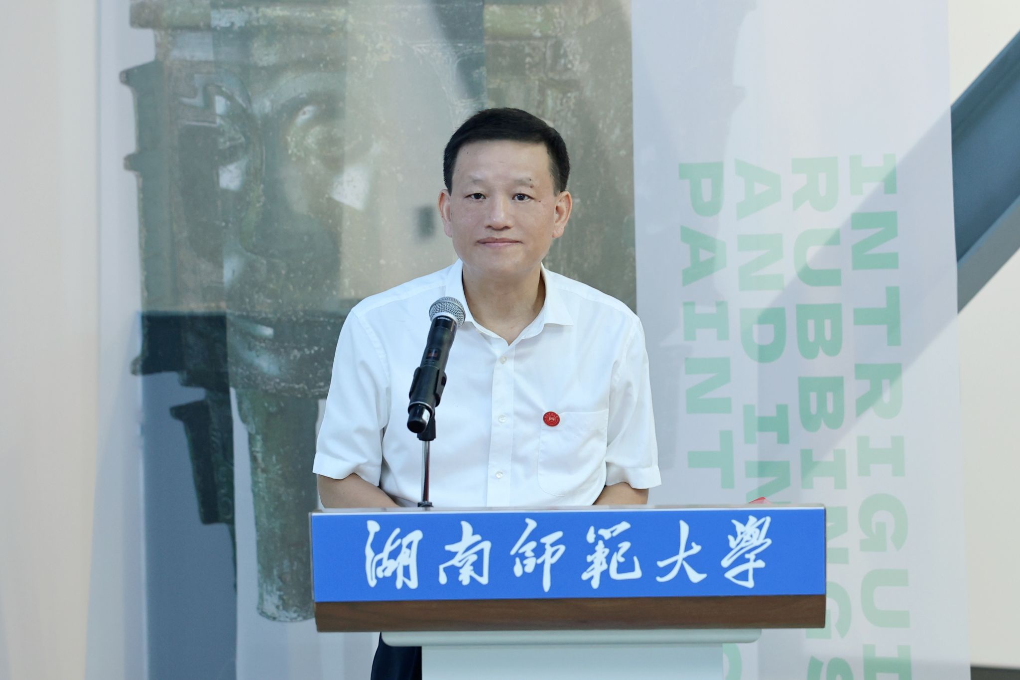 蒋洪新致欢迎辞。他代表我校向宁乡市的各位领导嘉宾表示诚挚的欢迎和衷心的感谢。他表示,省委省政府高度重视我校文博人才培养,就文博人才联合培养、文物保护与研究、文物活化利用与产业发展等作出重点要求。此次签约既是贯彻落实习近平总书记“两个融合”命题、落实省委指示精神的重要举措,也是对馆校深度合作、协同育人新模式的大力支持。他表示,宁乡历史悠久,名传潇湘,出土了以四羊方尊为代表的青铜瑰宝,被誉为“中国南方青铜文化中心”。此次合作是一次校地同频共振、相互赋能的双向奔赴。我校将以这次合作为契机、为起点,进一步推动师大与宁乡实现全方位、全天候的战略合作,进一步创新体制机制,充分释放发展活力与动能,发挥优势学科与产业的溢出效应,携手打造校地命运共同体。