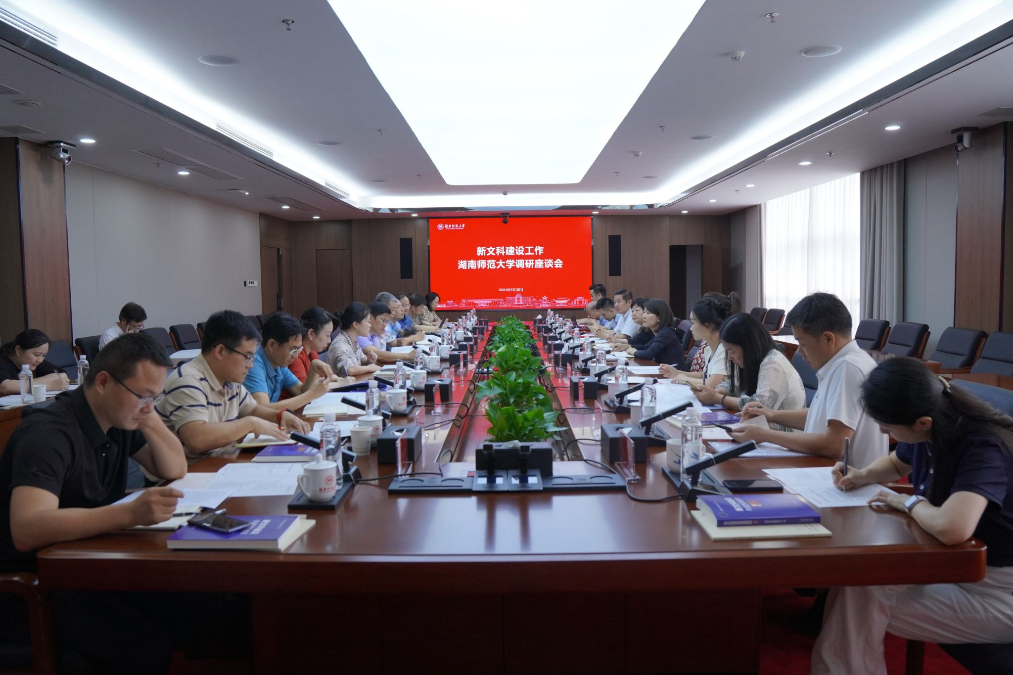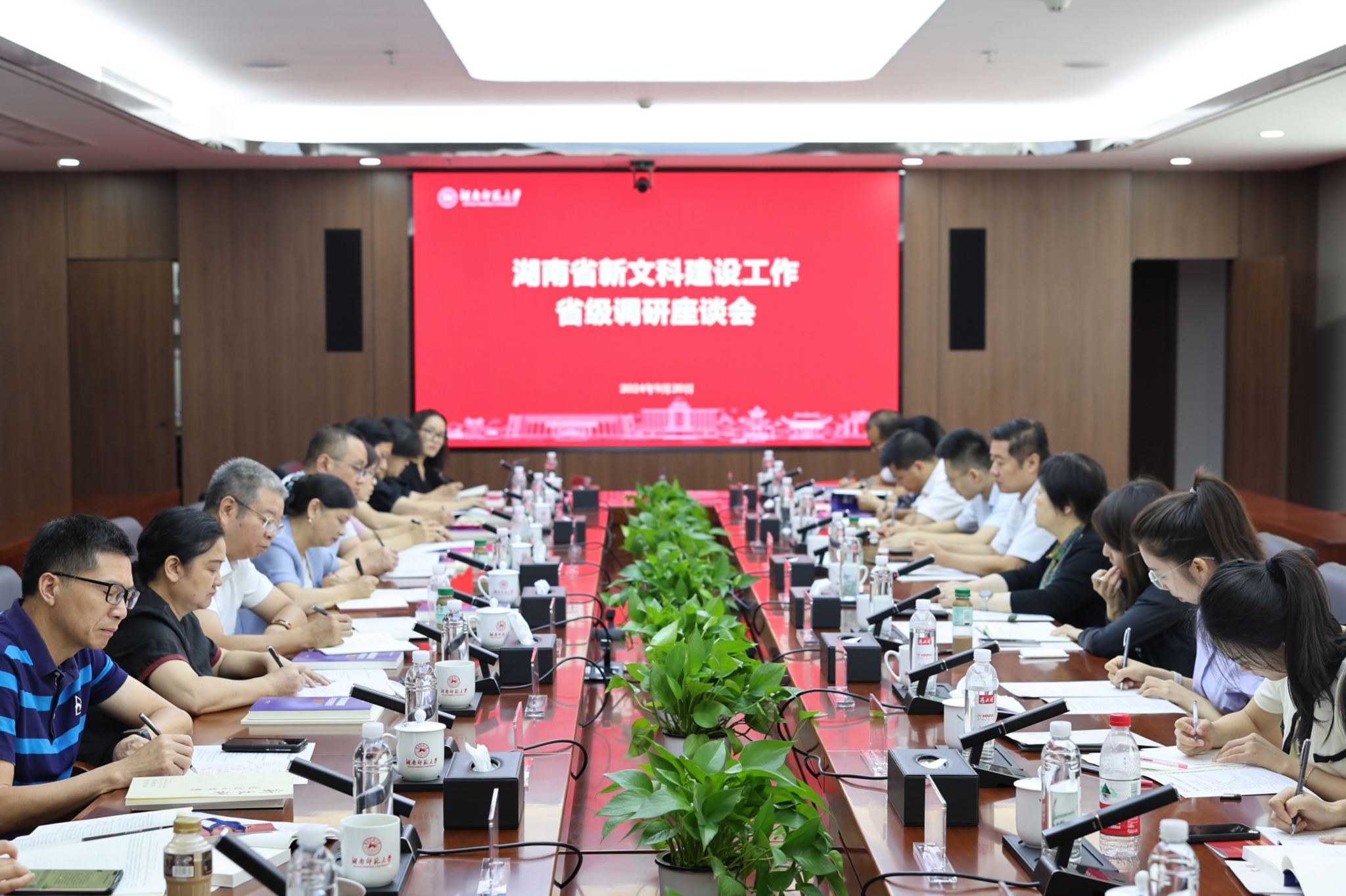 (记者 荣佳怡 宋晨 李影 徐伟柔)9月20日上午,湖南省新文科建设工作省级调研座谈会在我校三棵树科研楼四楼会议室召开。教育部新文科建设工作组组长、山东大学原校长、全国新文科教育研究中心主任樊丽明,山东大学本科生院副院长、全国新文科教育研究中心办公室主任申树欣,湖南省教育厅一级巡视员左清,湘潭大学副校长刘中望,湖南工商大学副校长张玲,我校党委副书记周俊武出席会议。会议由湖南省教育厅高等教育处副处长周军主持。