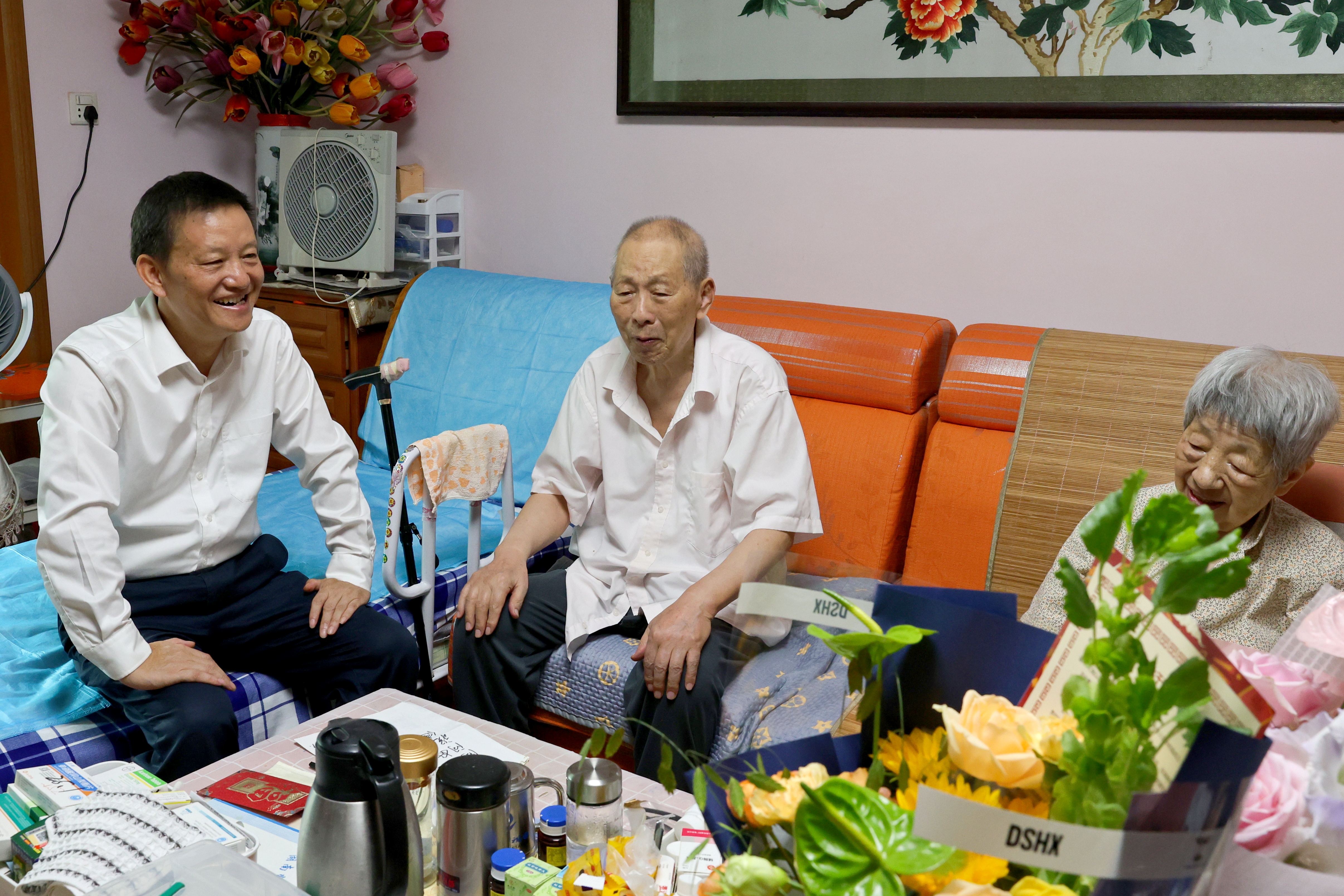 蒋洪新来到离休干部、原校党委书记陈信及夫人景翠英家中。他详细地了解两位老干部身体状况,向二老多年来关心支持学校的建设发展表示崇高的敬意,祝福二老身体健康,阖家幸福,并嘱咐工作人员要进一步做好老干部服务工作。